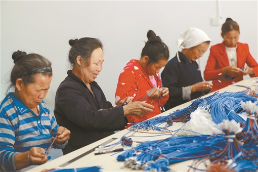 5月10日,通道侗族自治县双江镇罗武村扶贫车间,侗族妇女在加工电子元件。今年,该县通过“送项目到村、送就业到户、送政策到家”,带动了800多名贫困劳动力在家门口就业增收。 刘强 摄