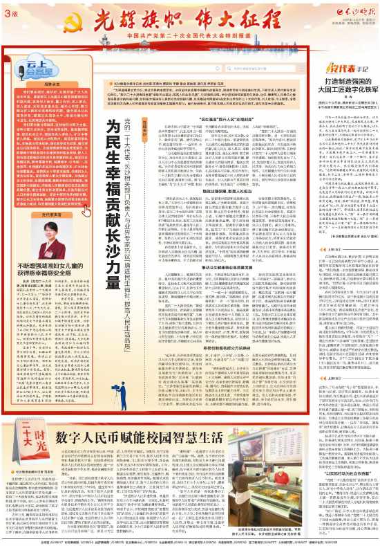 “为民造福是立党为公、执政为民的本质要求。必须坚持在发展中保障和改善民生,鼓励共同奋斗创造美好生活,不断实现人民对美好生活的向往。”党的二十大报告指出要“增进民生福祉,提高人民生活品质”,引发强烈共鸣。长沙应该如何紧紧抓住就业、社保、健康等人民最关心最直接最现实的利益问题,如何着力解决好人民群众急难愁盼问题,扎实推进共同富裕?在北京出席党的二十大的代表,市人社局、市卫健委、市委政法委相关负责人和市委党校专家紧扣报告主题展开探讨。他们纷纷表示,要不断实现人民对美好生活的向往,谱写幸福长沙新篇章。