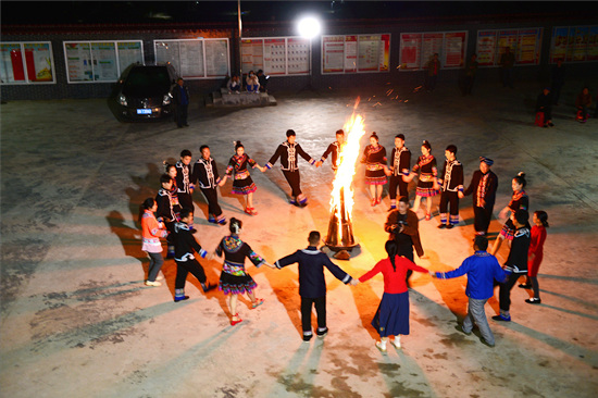 春节期间,那丘村举办起乡村“村晚”,当地自发组建的文艺表演队,唱起土家阳戏、打“三棒鼓”、跳摆手舞,一台土家特色乡村振兴戏激活了沉寂的小山村;伴着土家拦门酒、长龙宴的恢复,那丘村土家特色乡村文化让年轻人记住了乡愁。