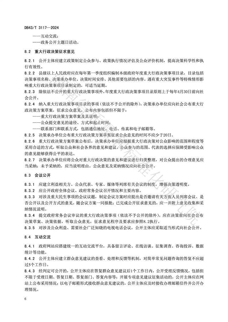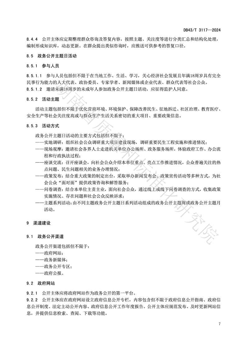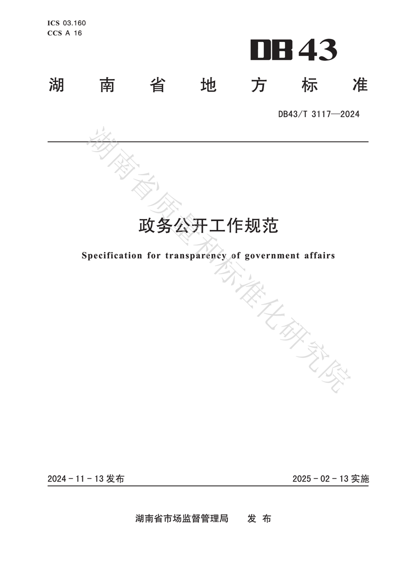 湖南省地方标准《政务公开工作规范》(DB43_T 3117-2024)