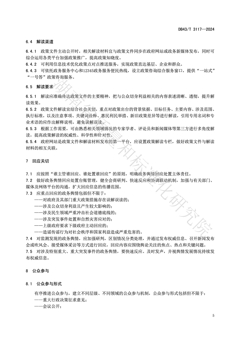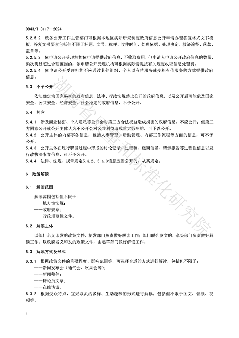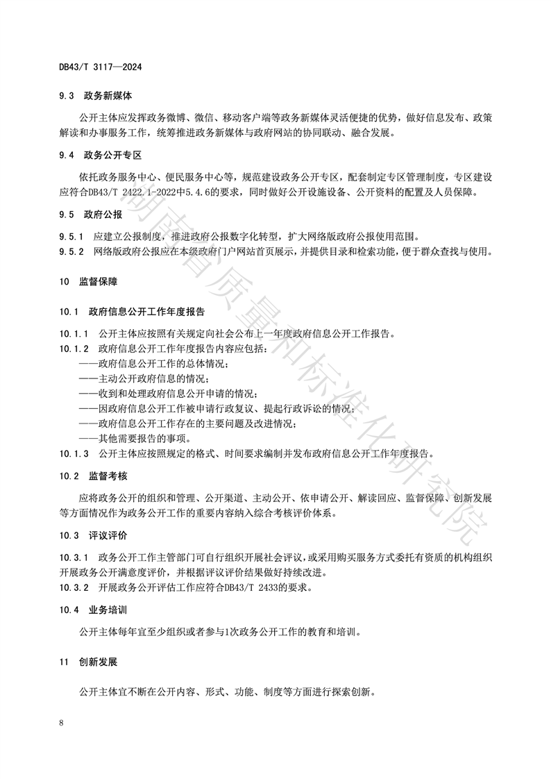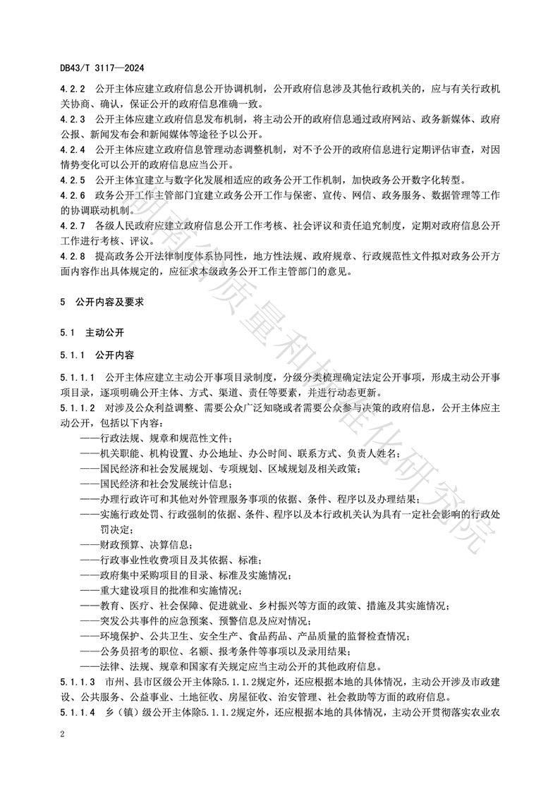 湖南省地方标准《政务公开工作规范》(DB43_T 3117-2024)