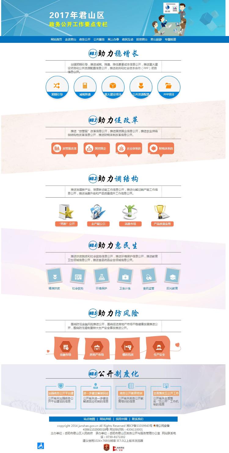 全年,我区依托政府门户网站高标准完成了君山区2017年政务公开工作要点专栏及三个重点办事服务项的建设,累计公开政府信息12187条,其中围绕稳增长、促改革、调结构、惠民生、防风险等重点领域公开政府信息1911条。完成本地政策解读15次,解读形式上做到了图文并茂、直观易懂。