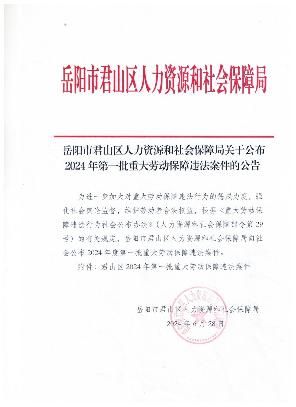 2024年4月25日,岳阳市君山区人力资源和社会保障局以涉嫌拒不支付劳动报酬罪依法将该案移送公安机关立案查处,岳阳市君山区公安局君山分局2024年5月29日作出立案决定。