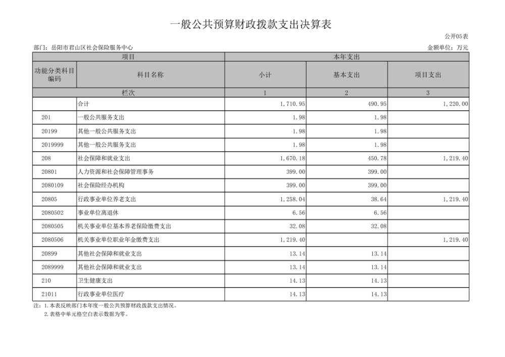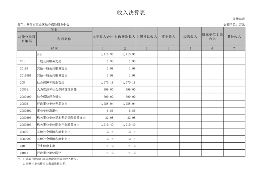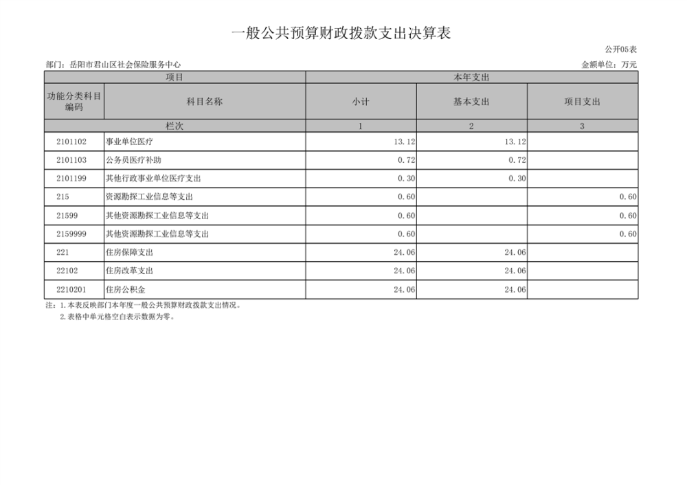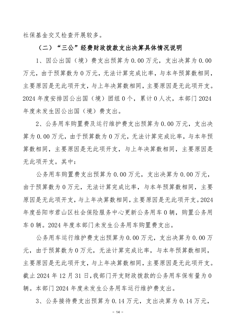 2024年度岳阳市君山区社会保险服务中心部门决算公开