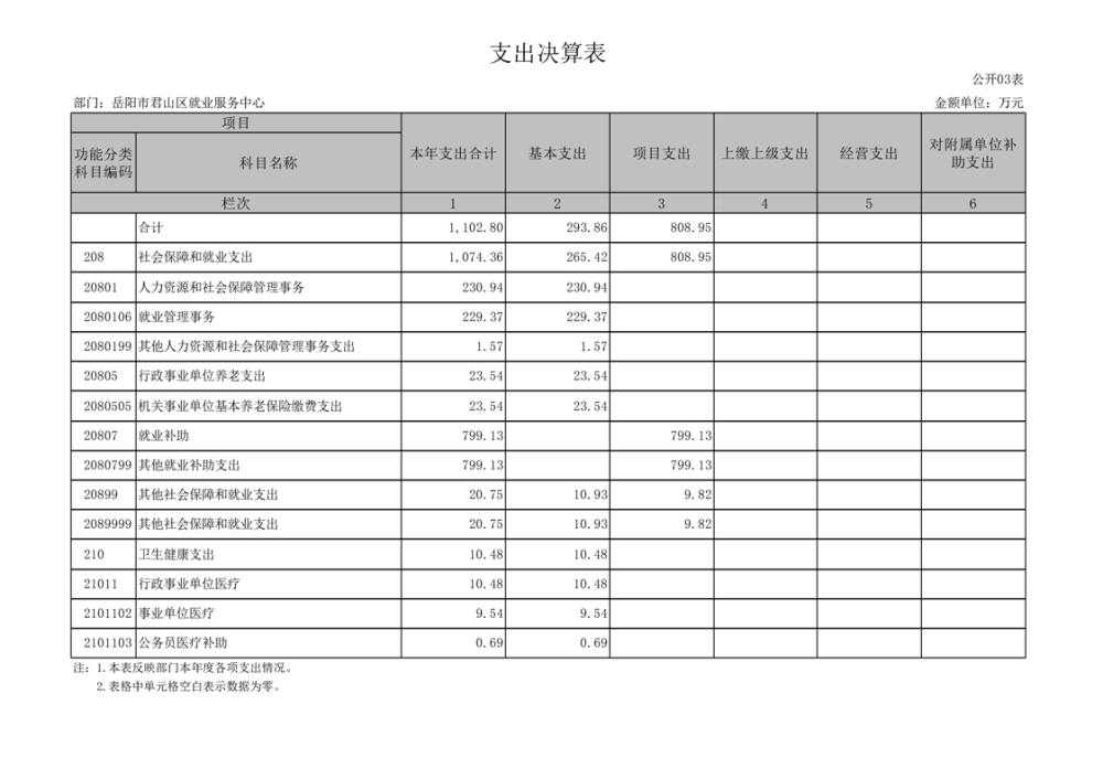 2024年度岳阳市君山区就业服务中心部门决算公开