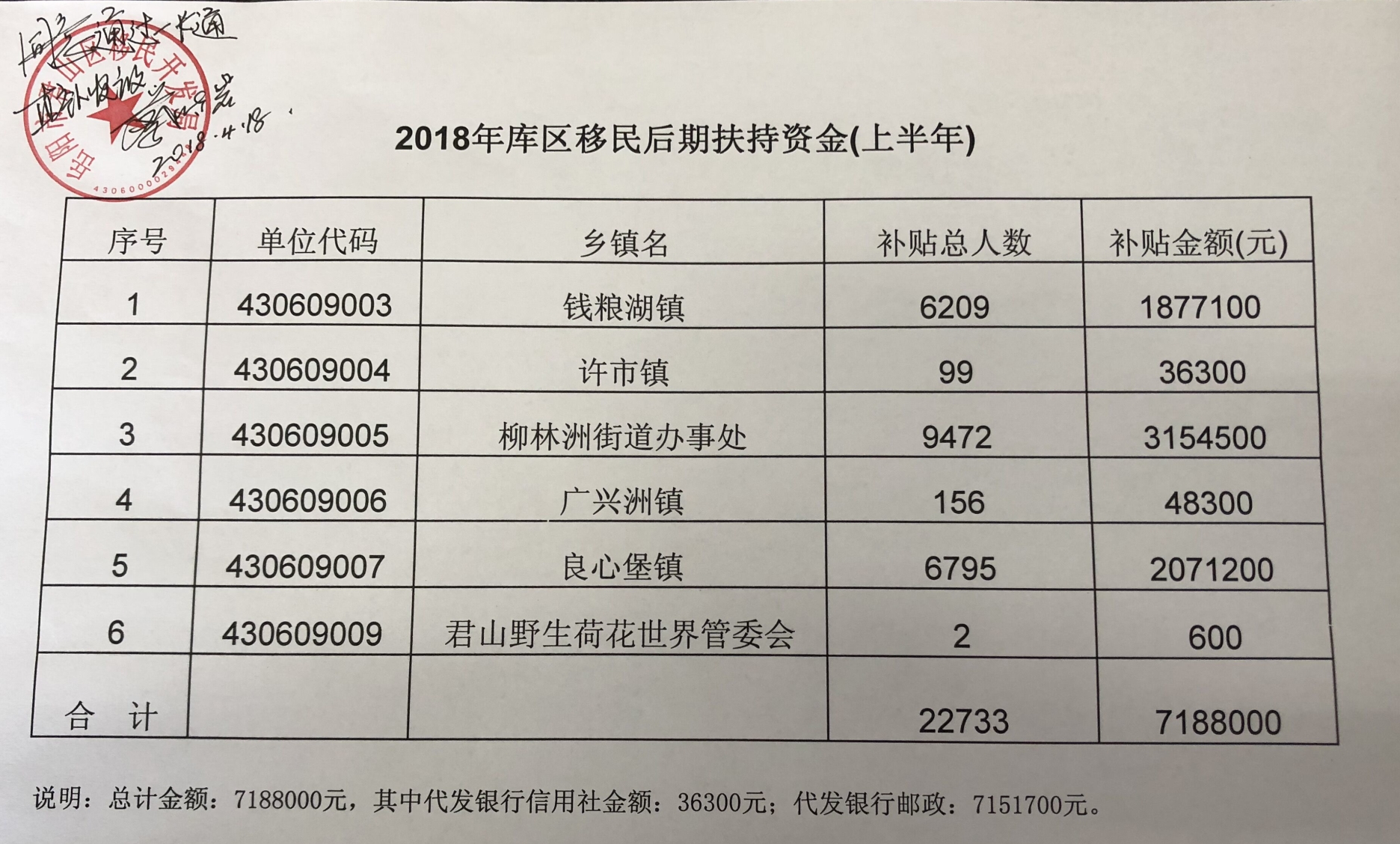 2018年库区移民后期扶持资金(上半年度)