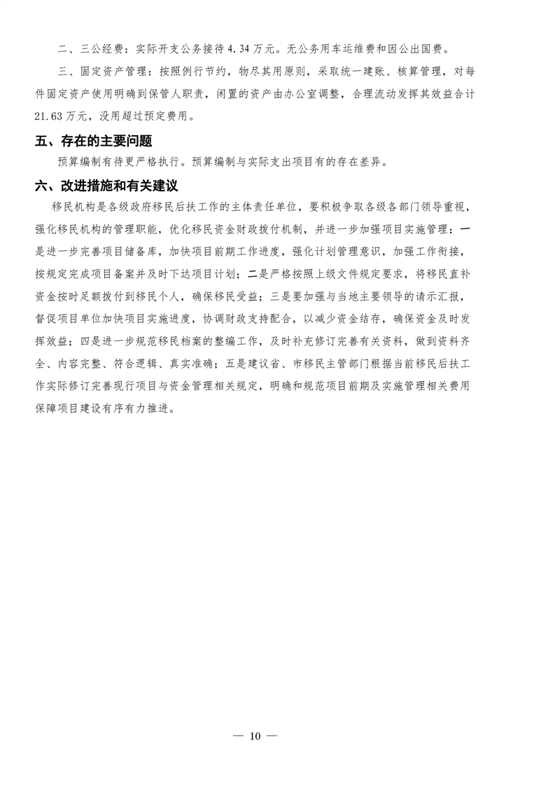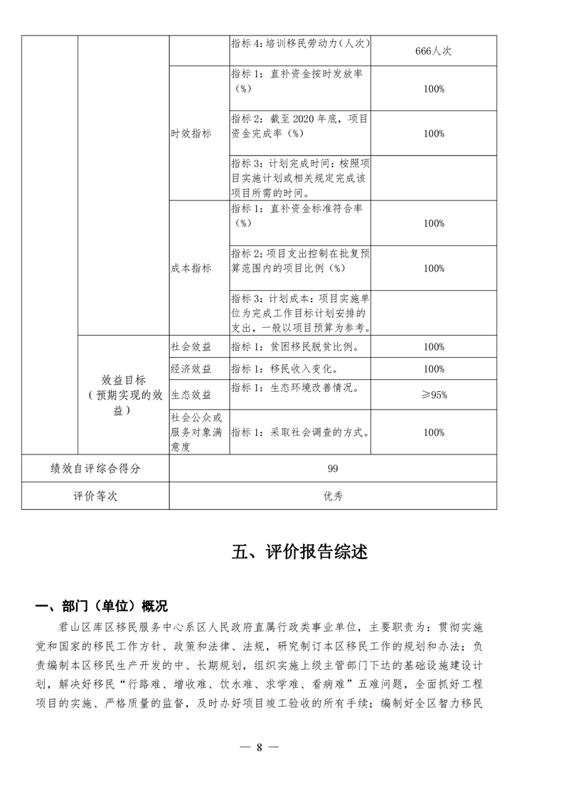 君山区2021年度库区移民服务中心整体支出绩效评价自评报告