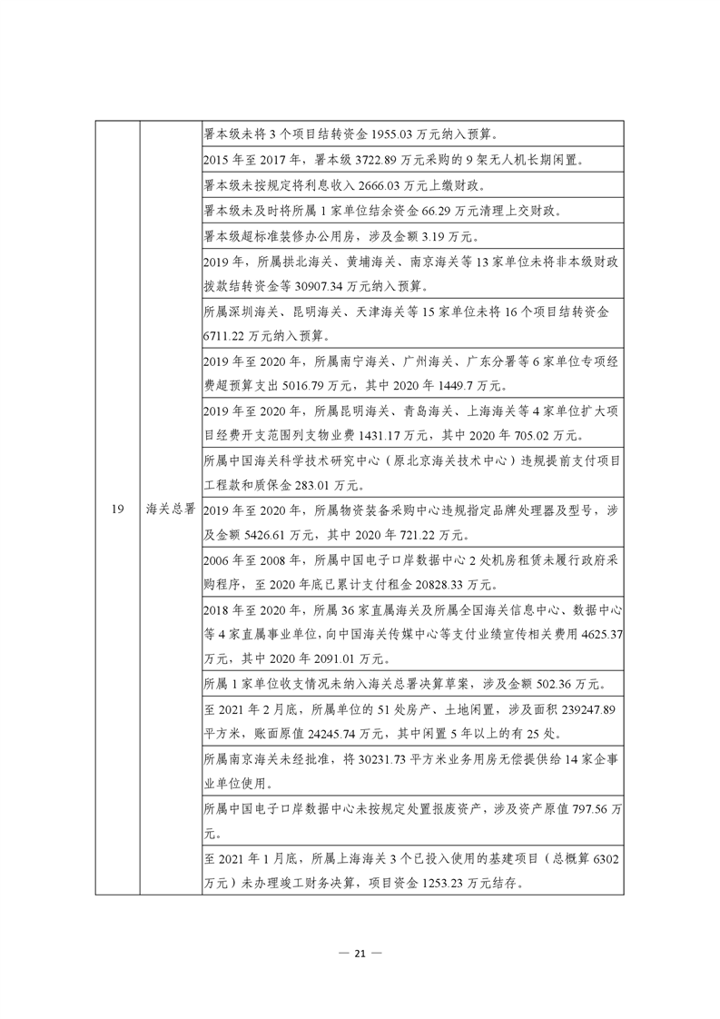 2021年第3号公告:中央部门单位2020年度预算执行等情况审计结果