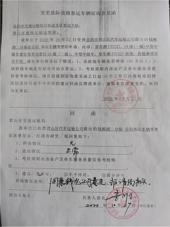 附件:县际道路客运班线征询意见函、关于县际道路客运班线征询意见的复函