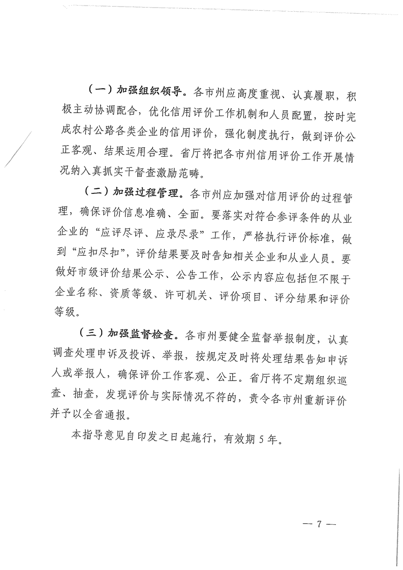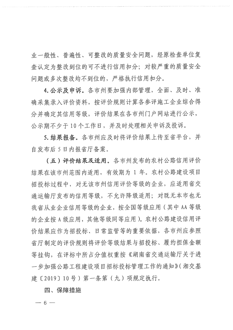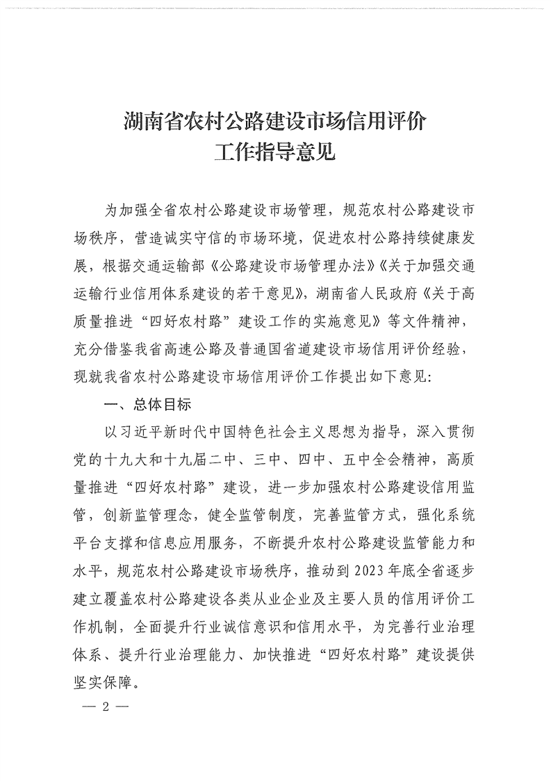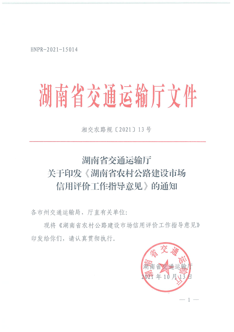 关于印发《湖南省农村公路建设市场信用评价工作指导意见》的通知