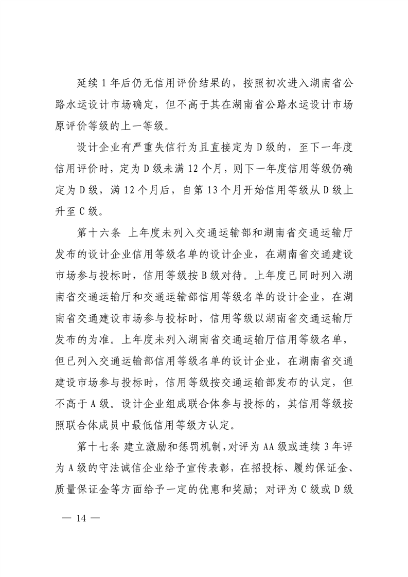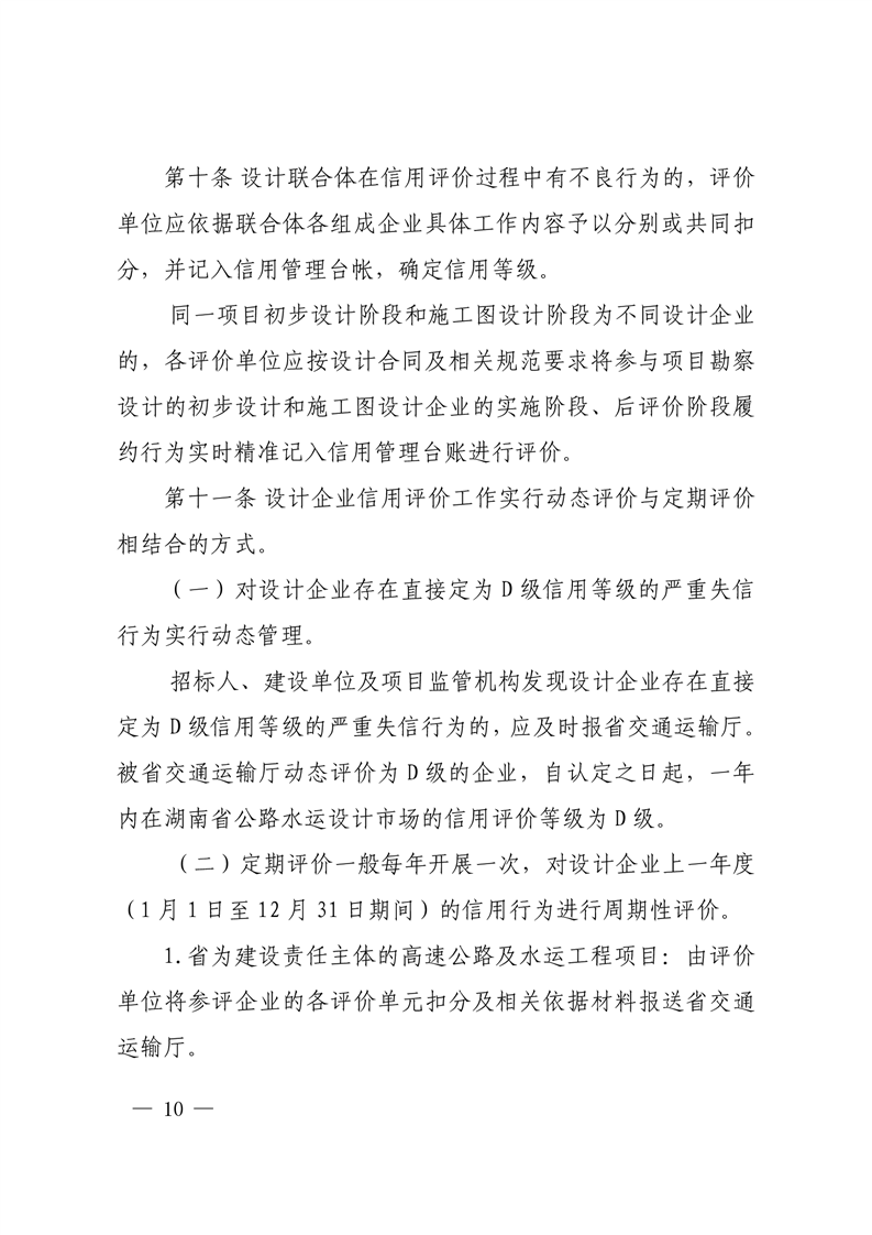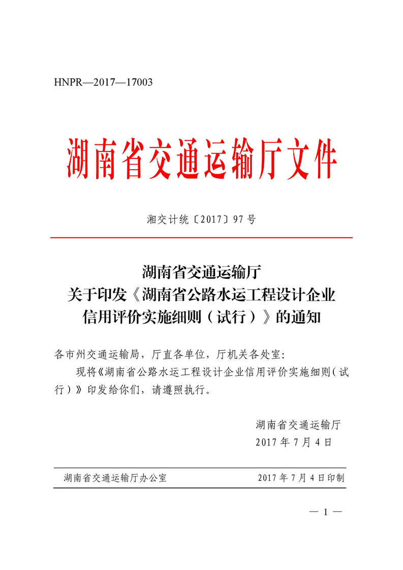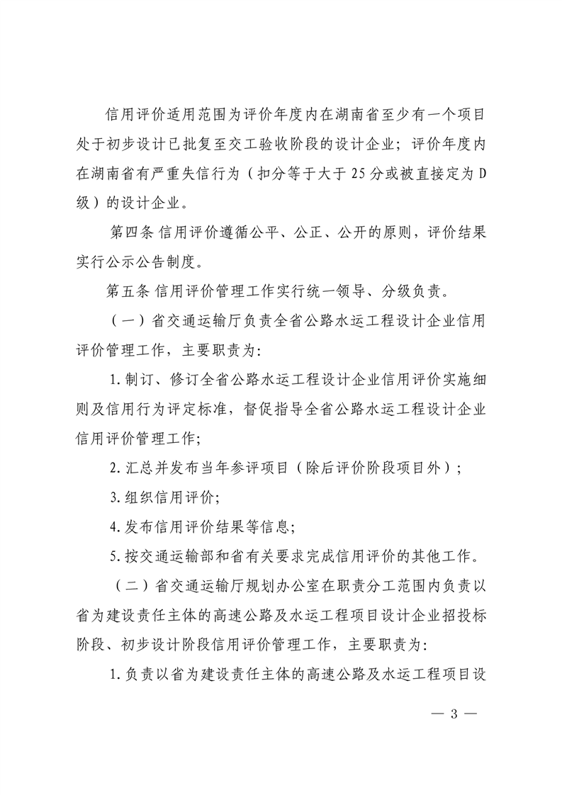 湖南省交通运输厅关于印发《湖南省公路水运工程设计企业信用评价实施细则(试行)》的通知