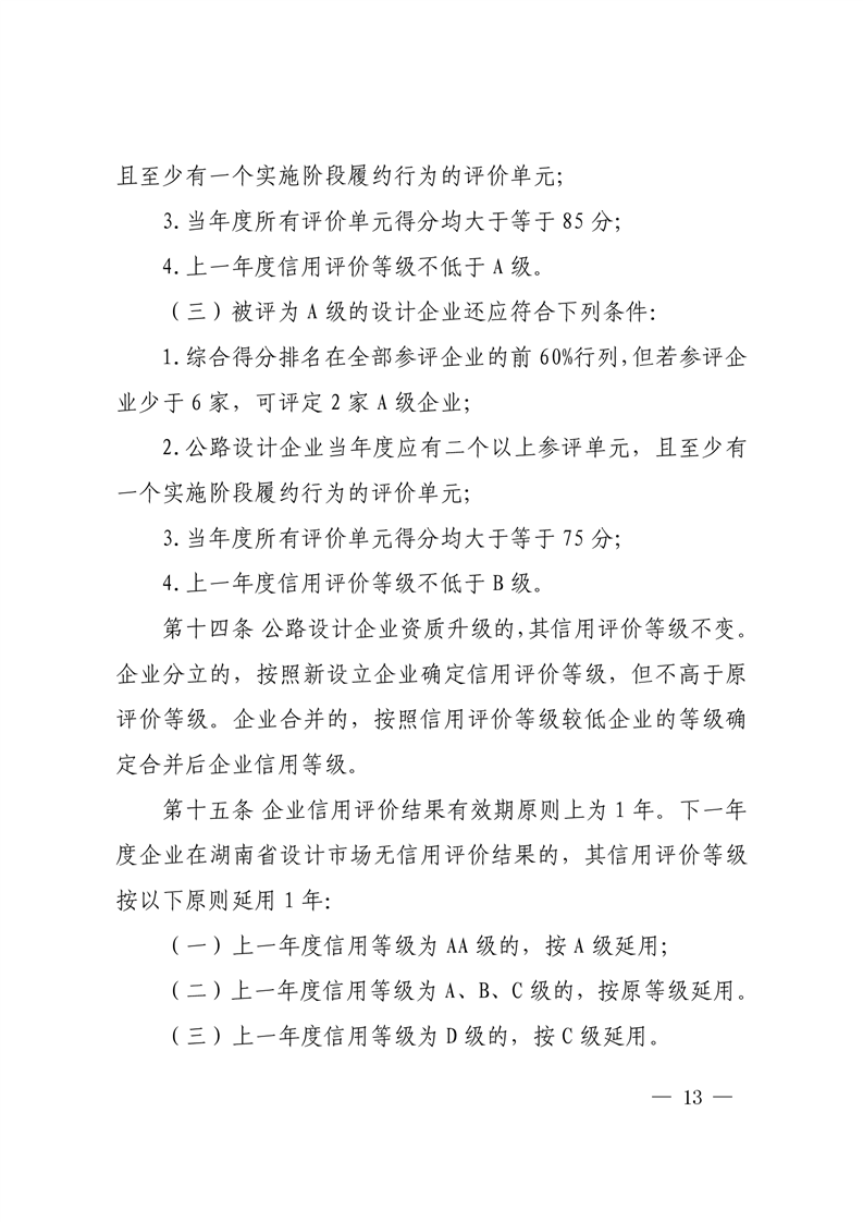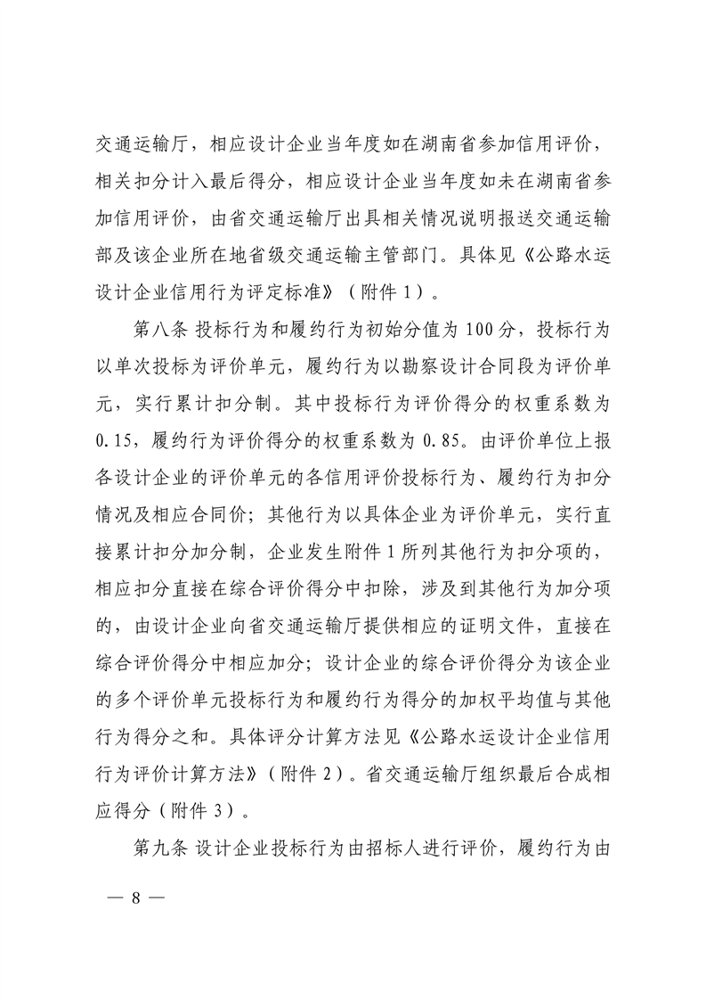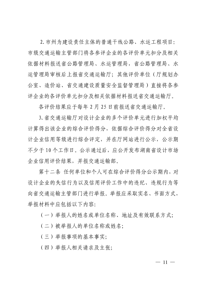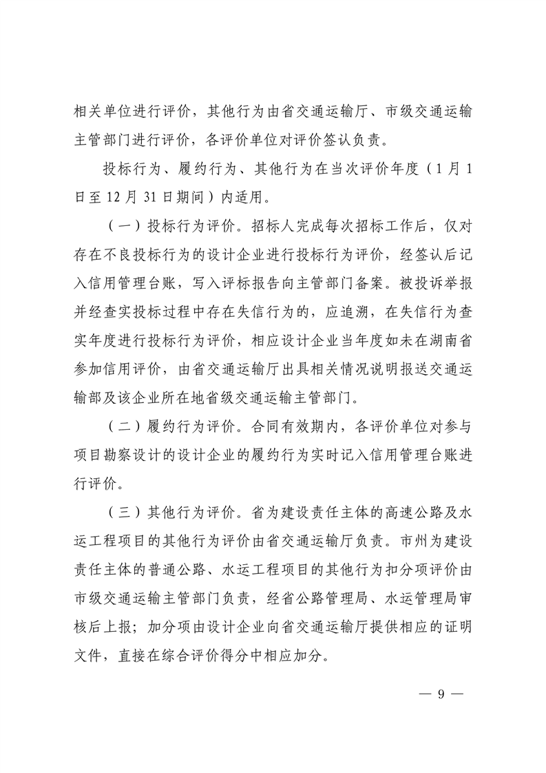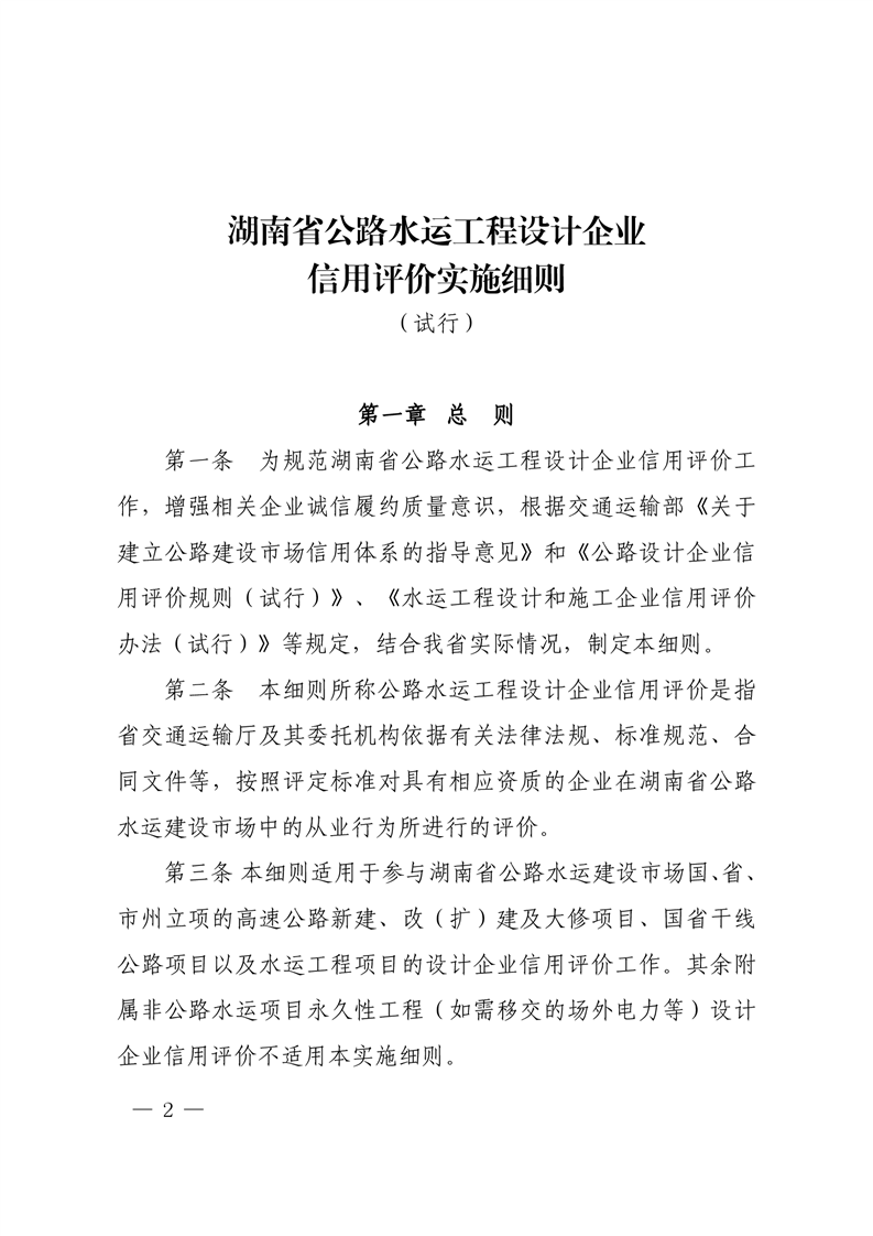 湖南省交通运输厅关于印发《湖南省公路水运工程设计企业信用评价实施细则(试行)》的通知