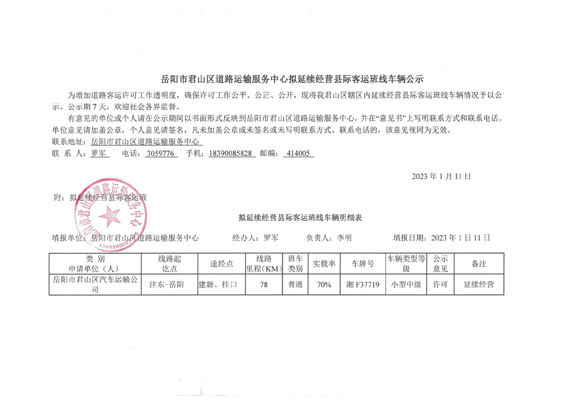 注东至岳阳(湘F37719)延续经营公示