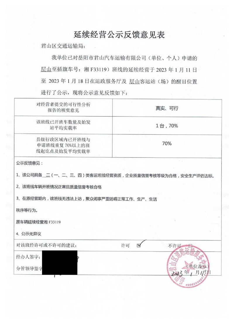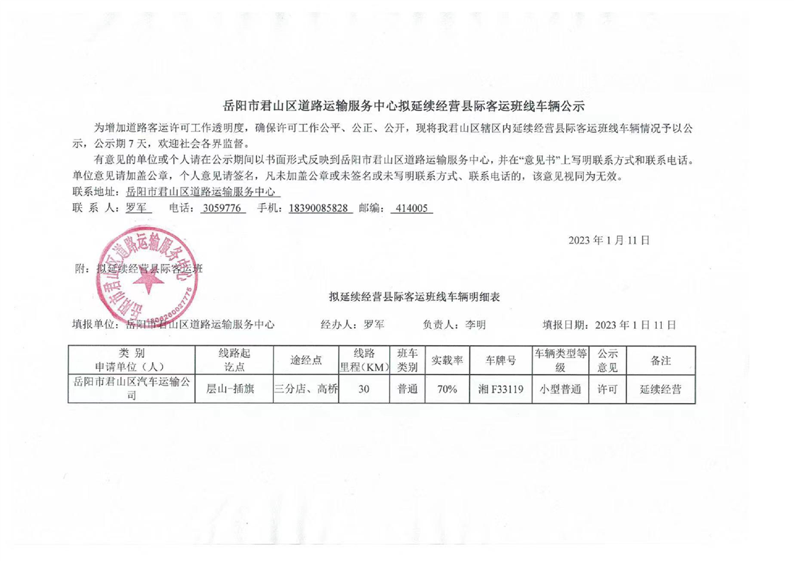 层山至插旗(湘F33119)延续经营公示