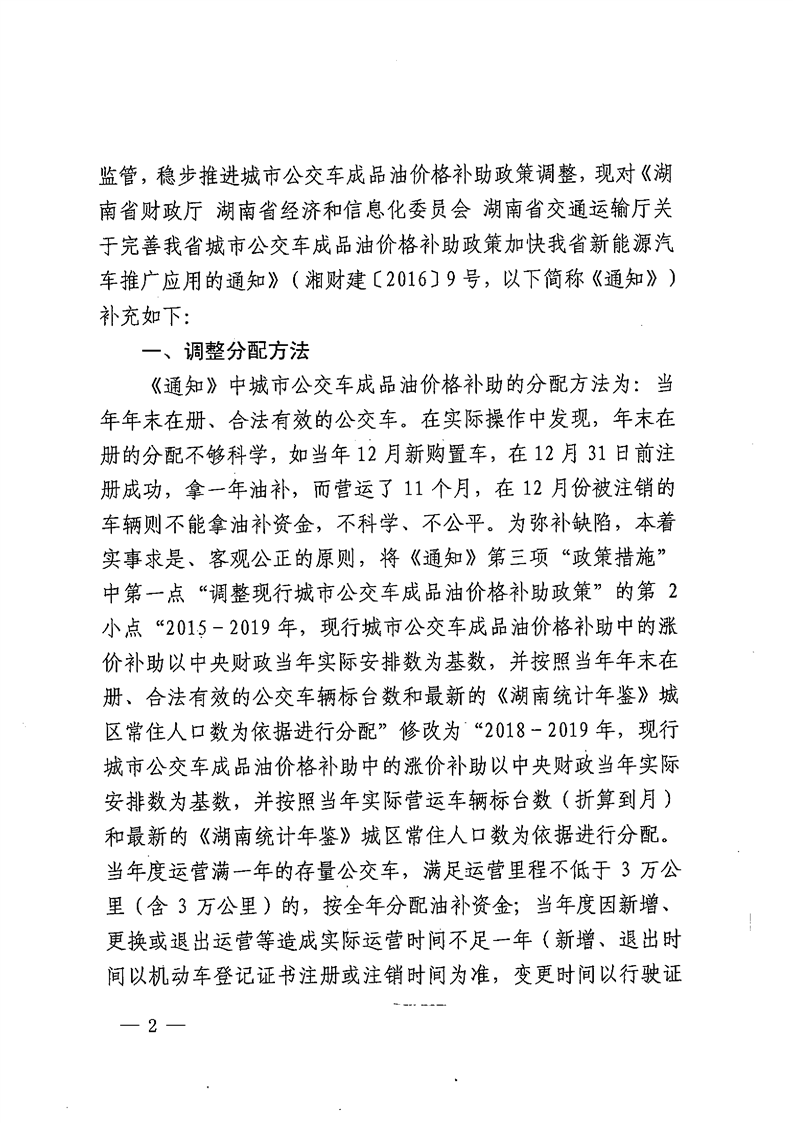 关于我省城市公交车成品油价格补助政策调整的补充通知