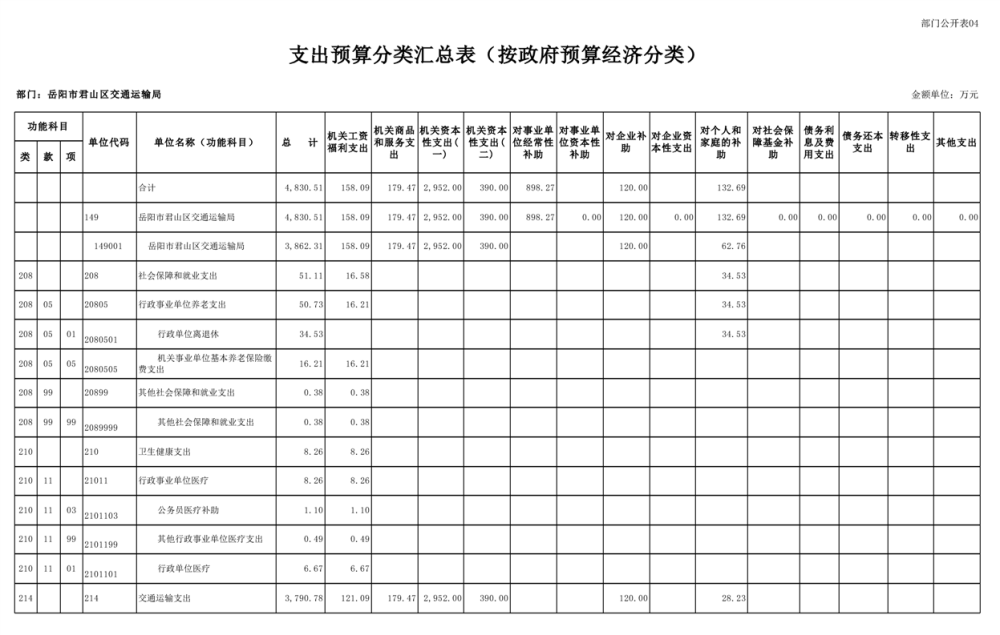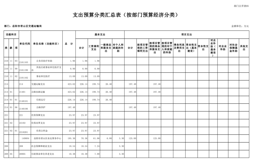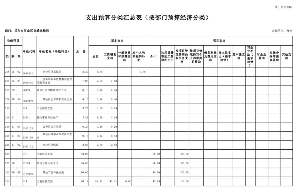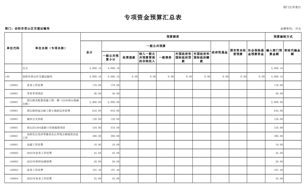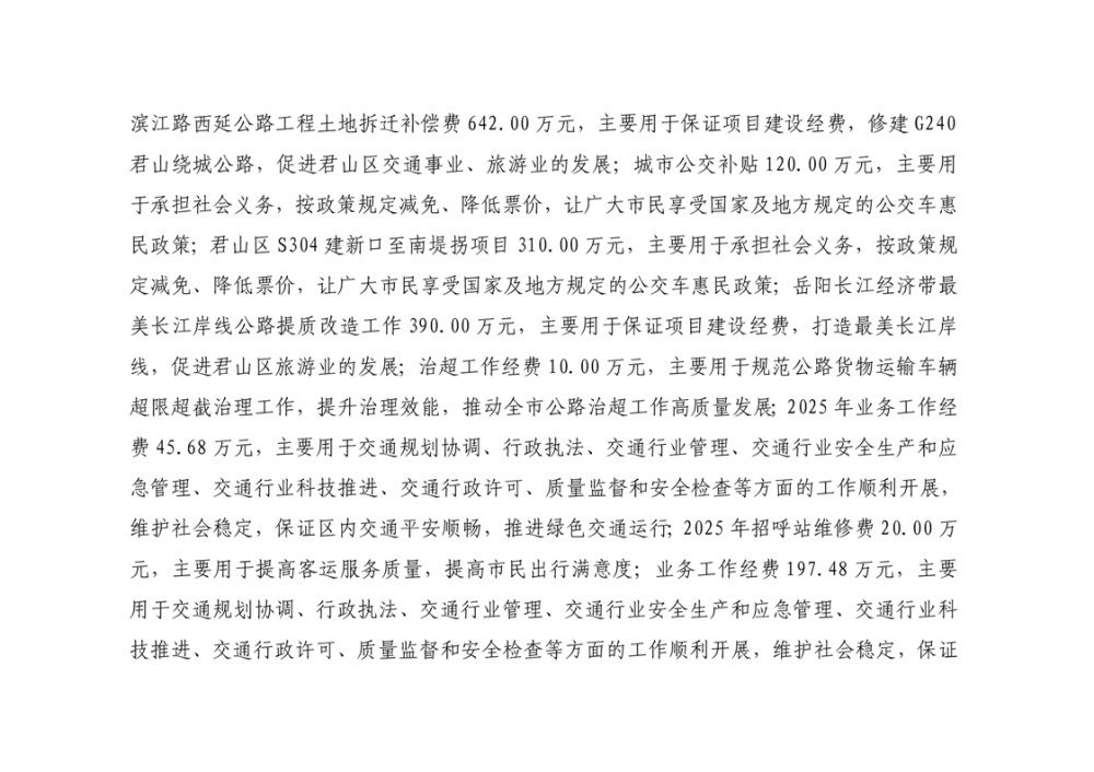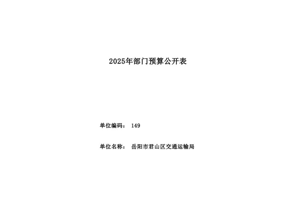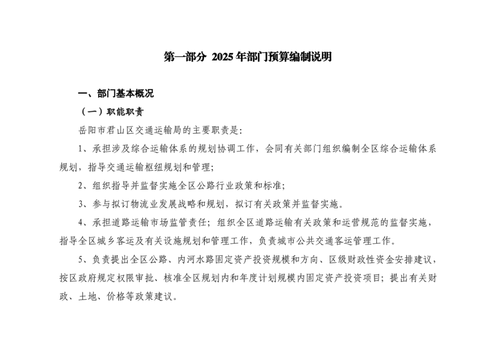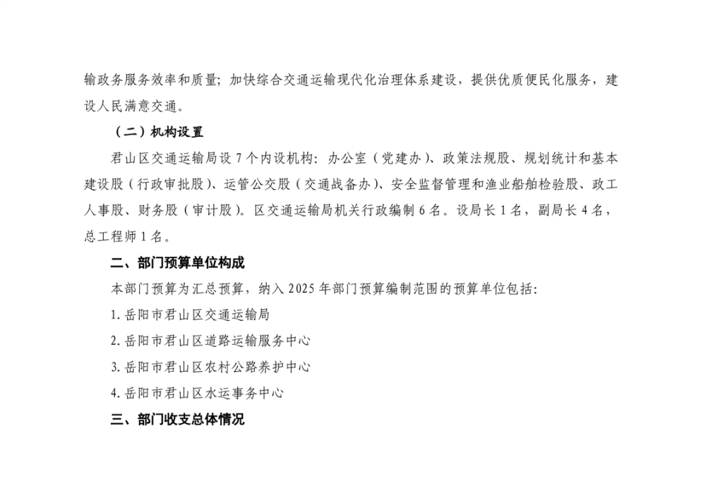 2025年岳阳市君山区交通运输局(部门)预算公开