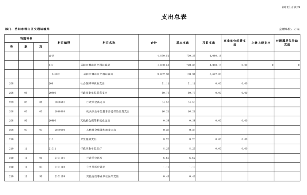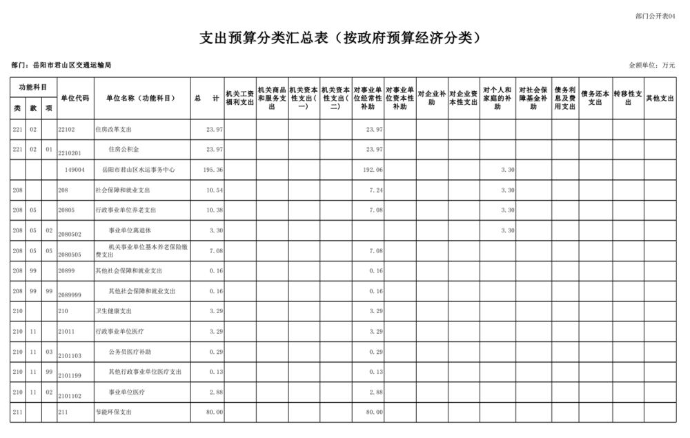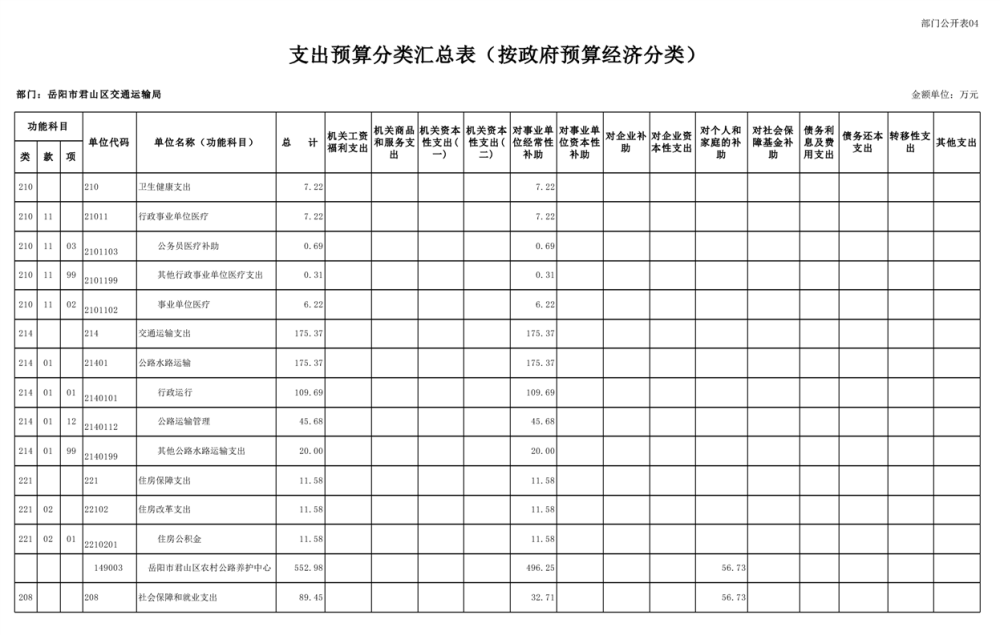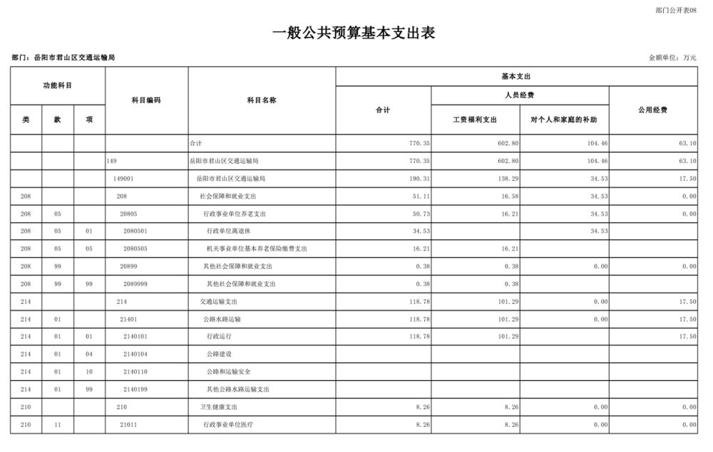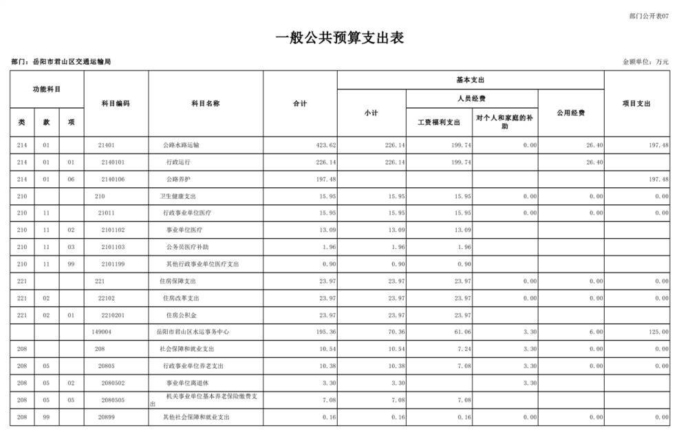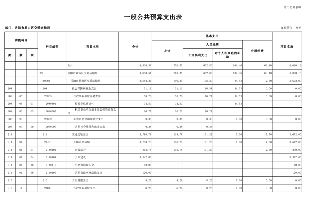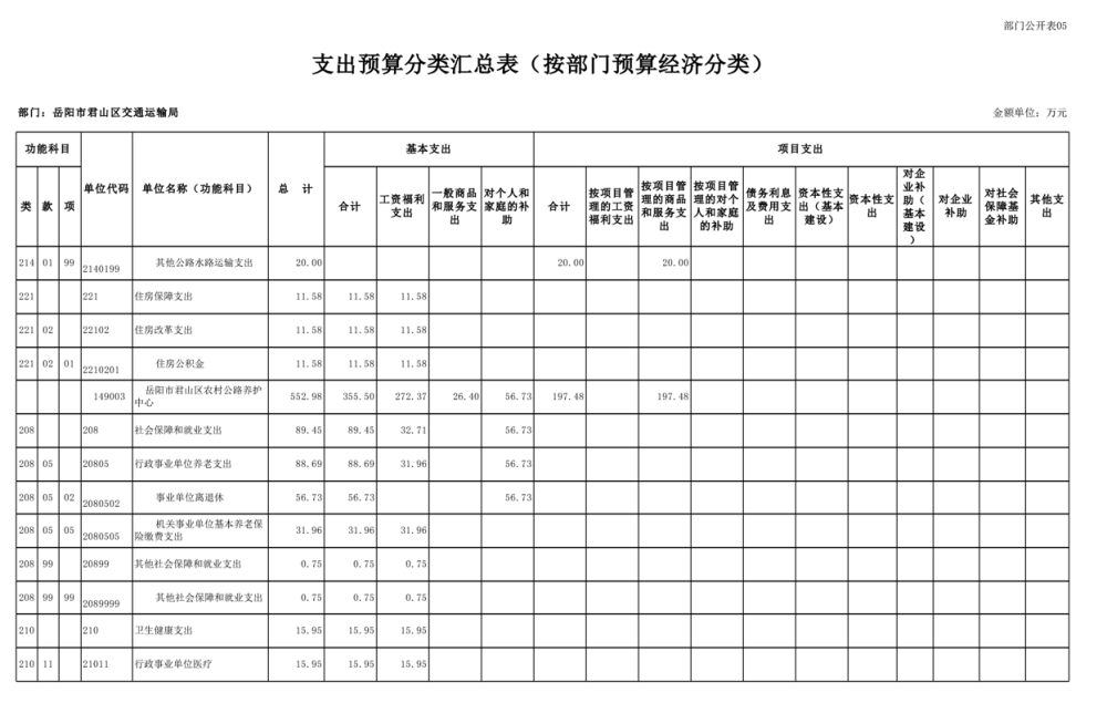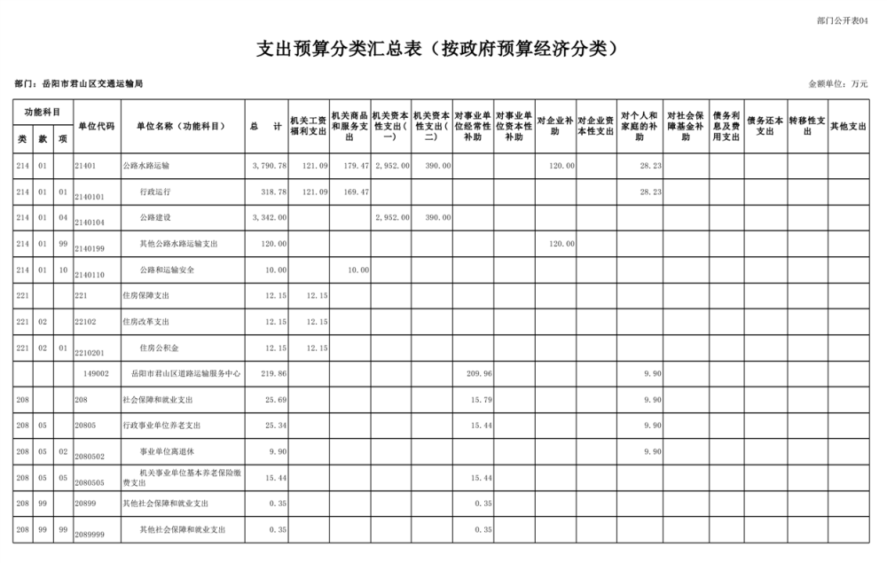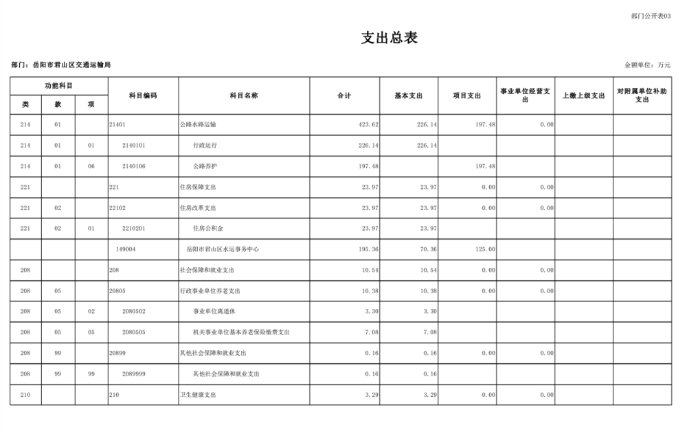 2025年岳阳市君山区交通运输局(部门)预算公开