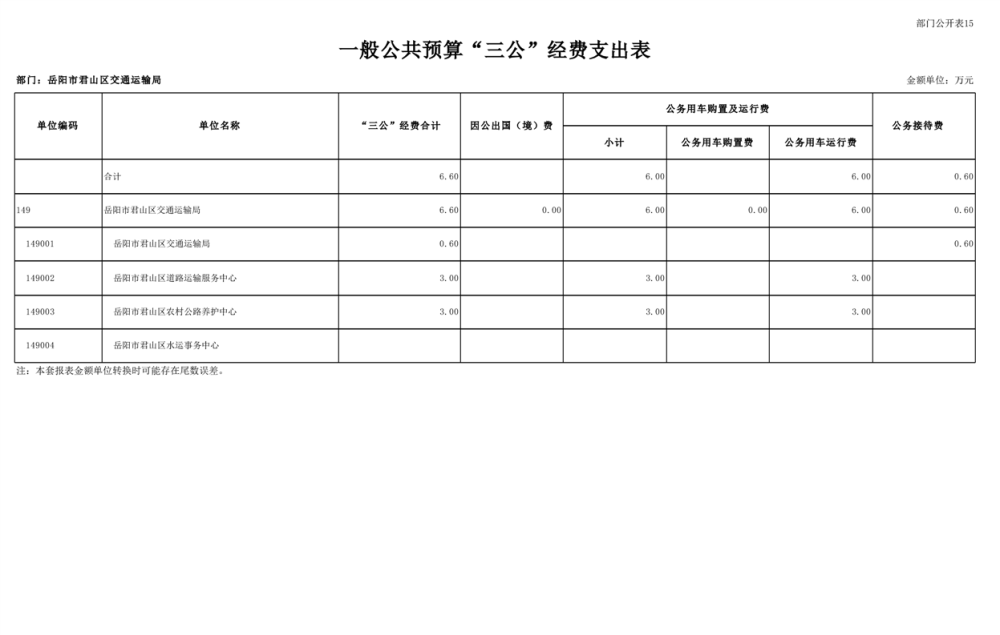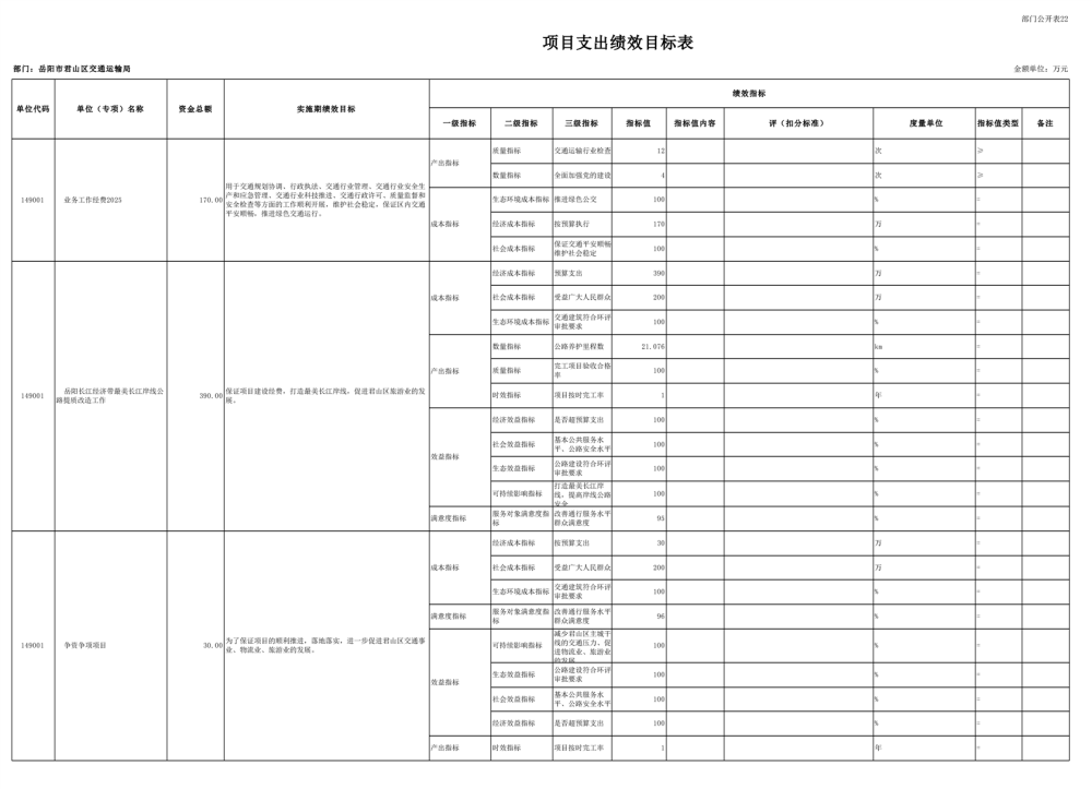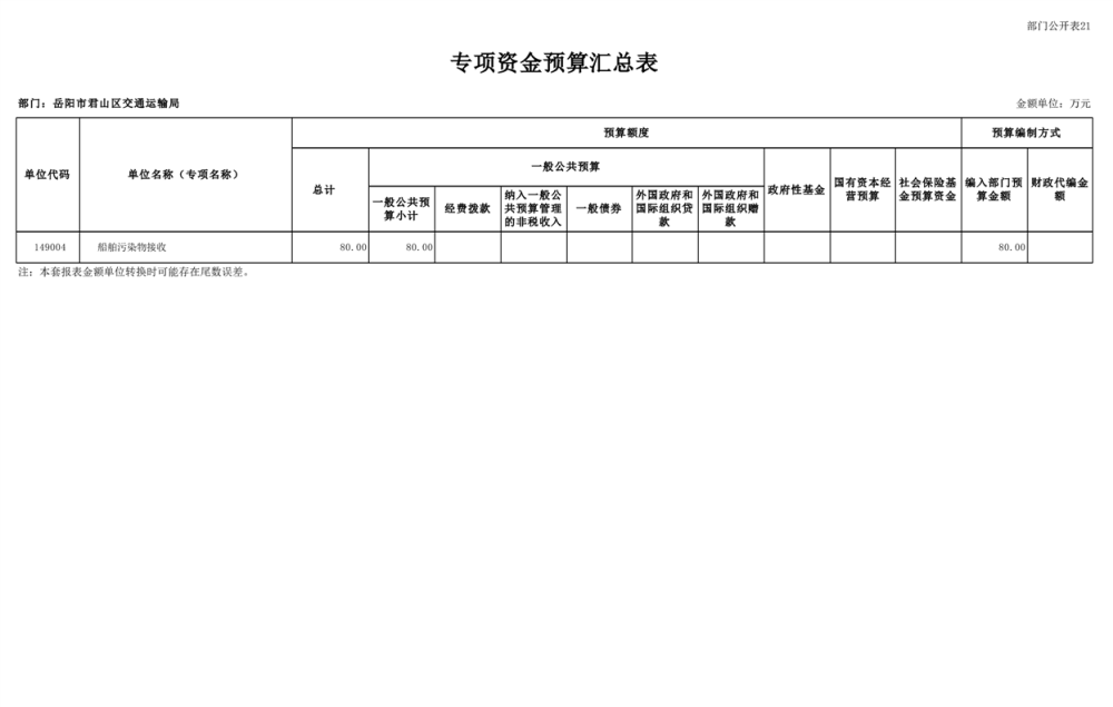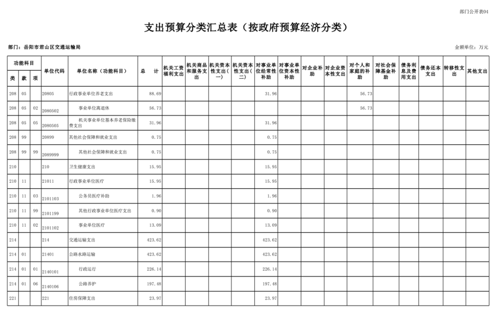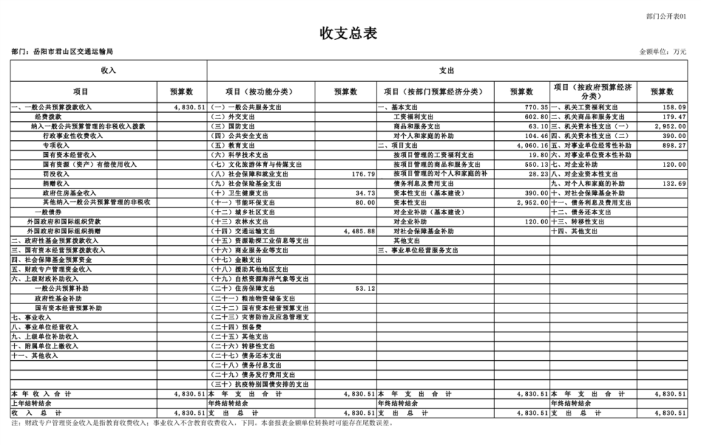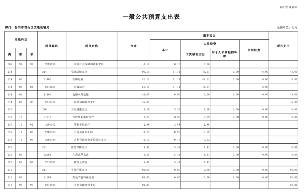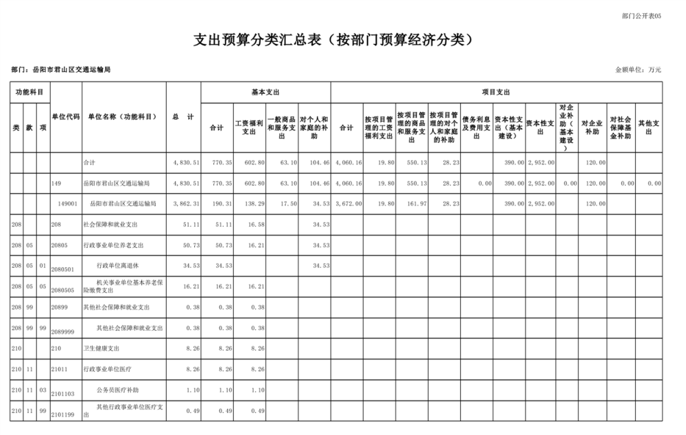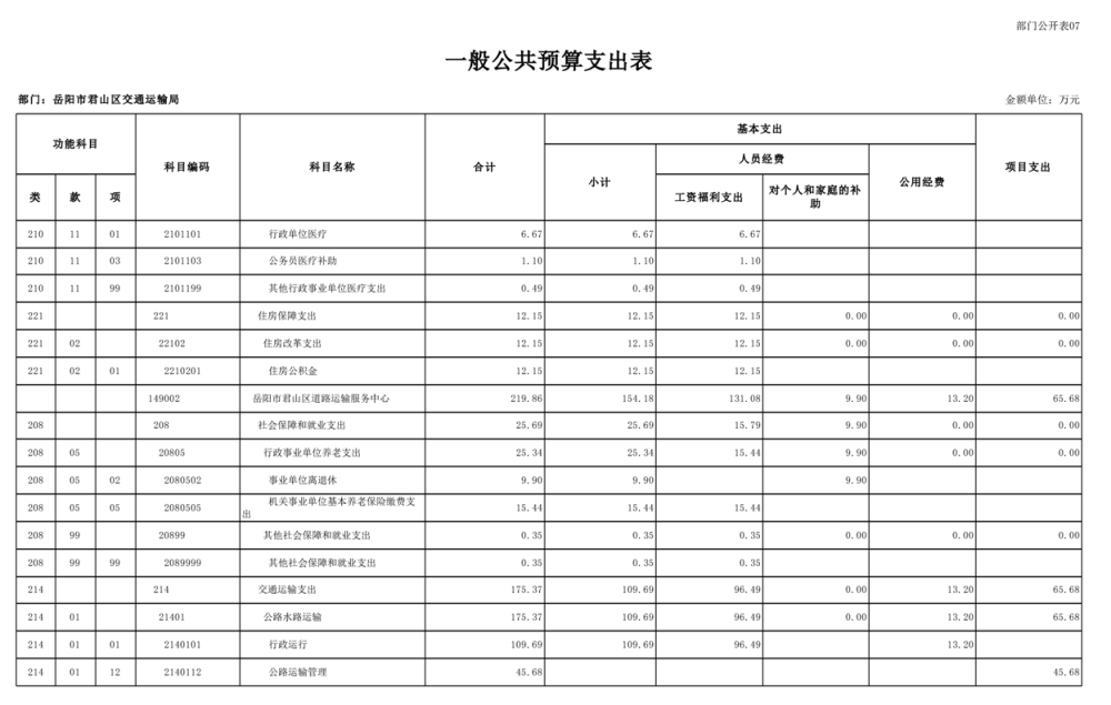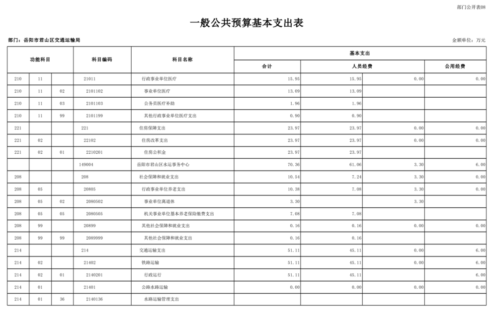 2025年岳阳市君山区交通运输局(部门)预算公开