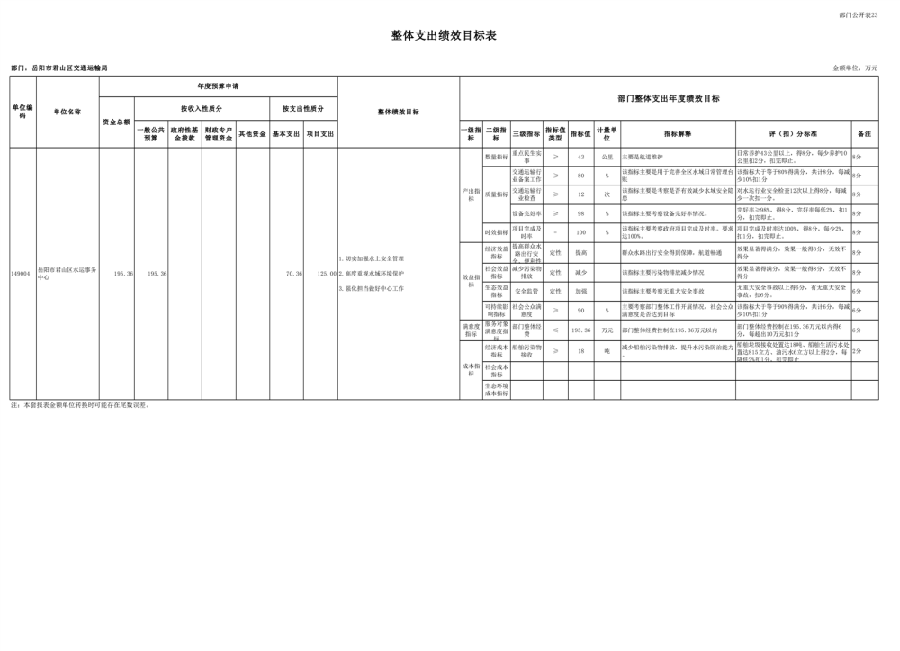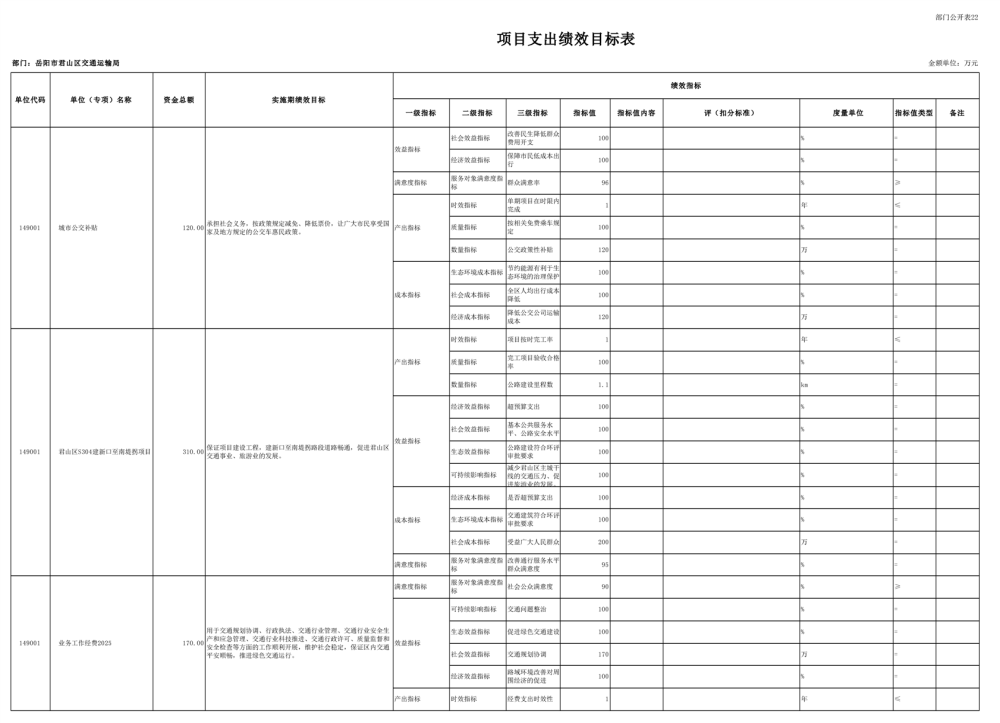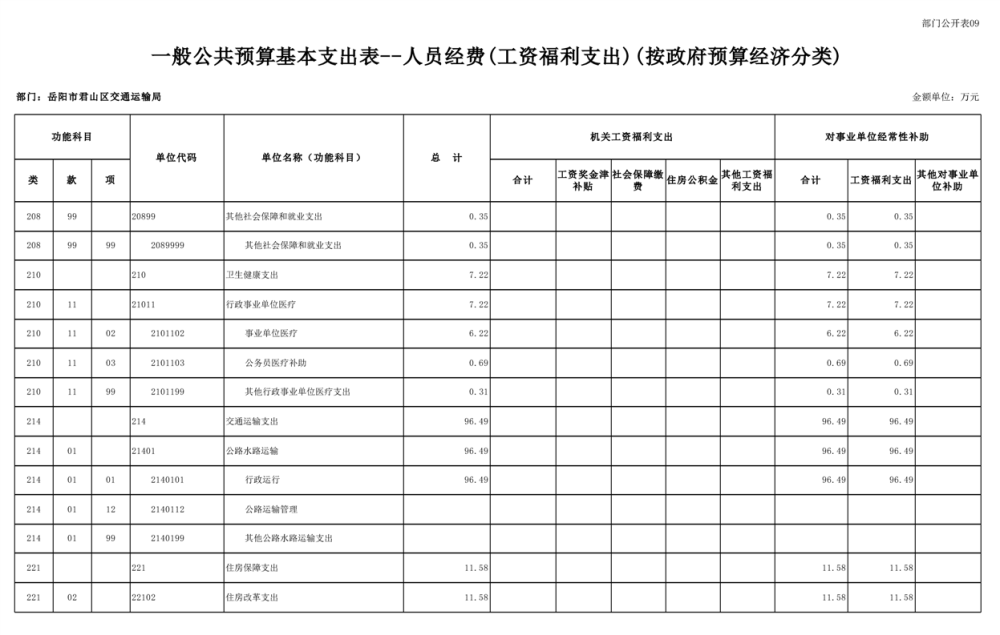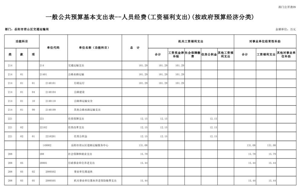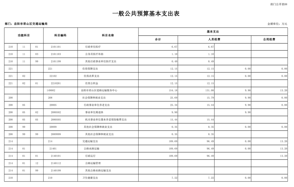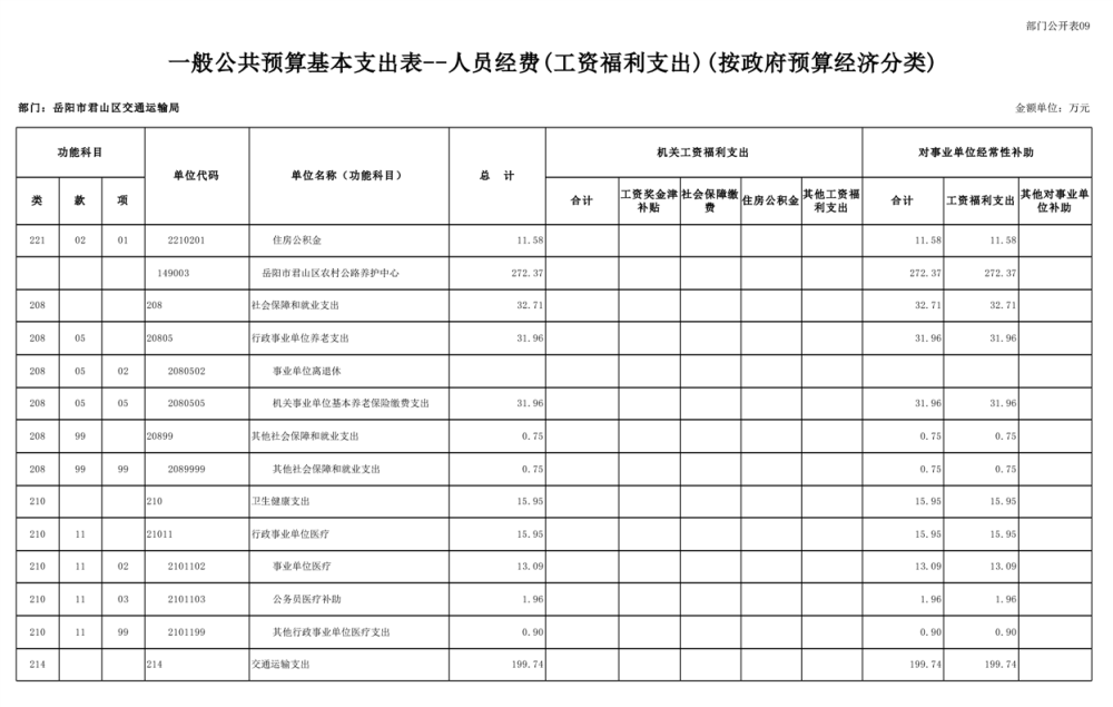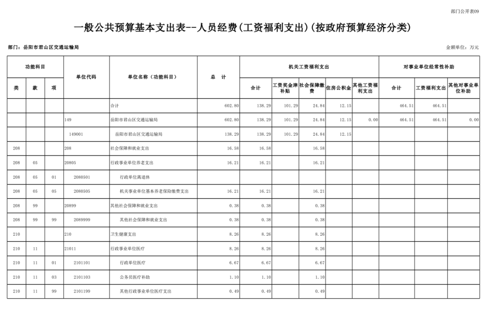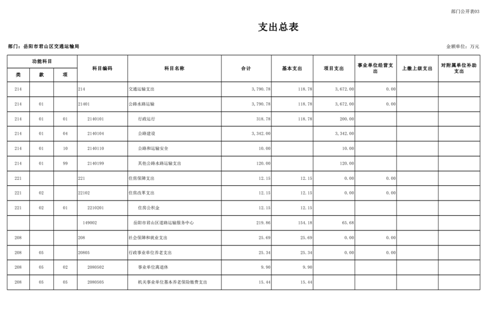 2025年岳阳市君山区交通运输局(部门)预算公开