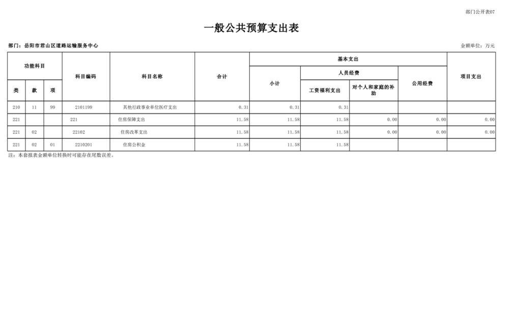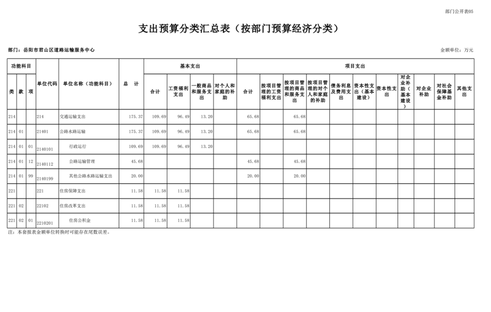 2025年岳阳市君山区道路运输服务中心部门预算公开