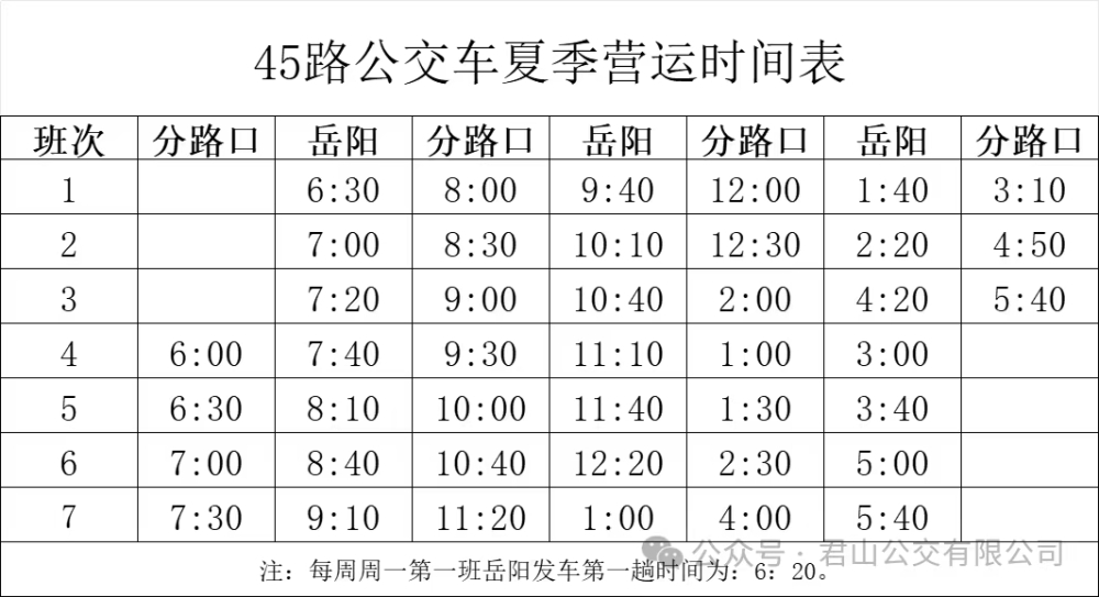 关于45路公交夏季营运时间的公告