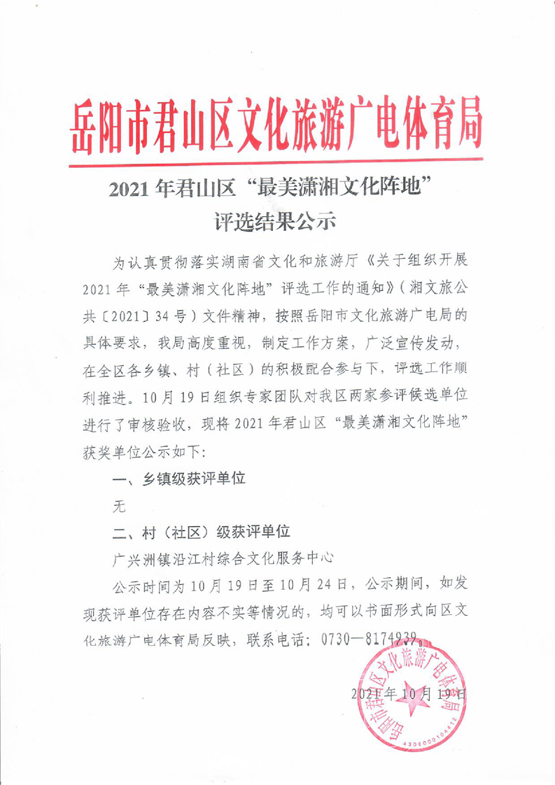 2021年君山区“最美潇湘文化阵地”评选结果公示