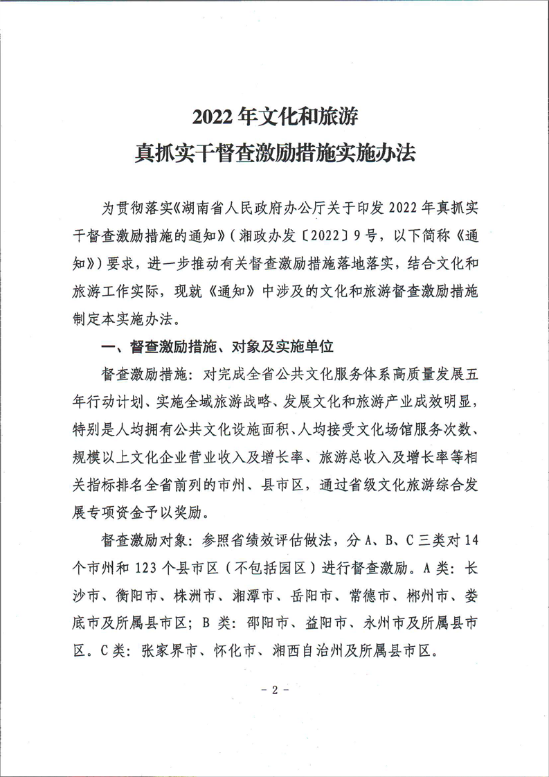 关于印发《2022年文化和旅游真抓实干督查激励措施实施办法》的通知