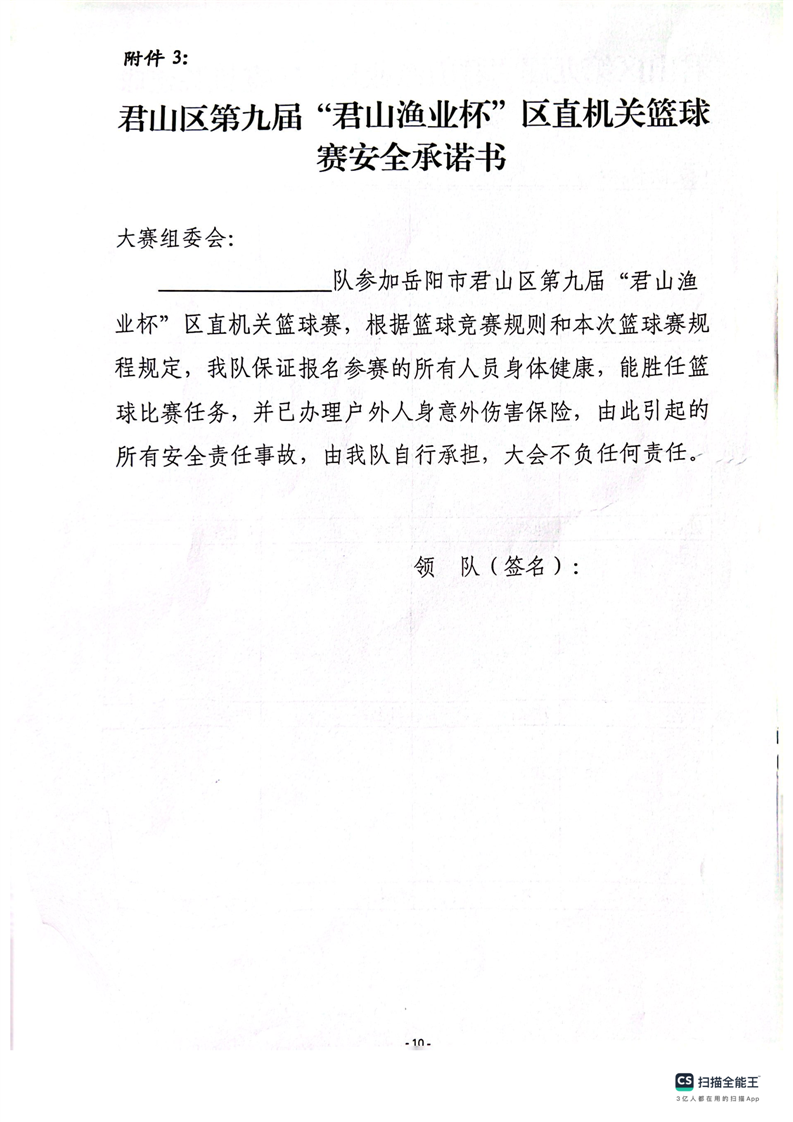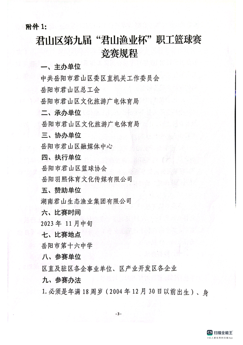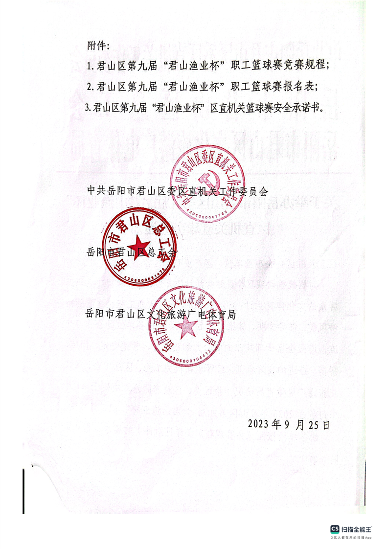 关于举办岳阳市君山区第九届“君山渔业杯”区直机关篮球赛的通知