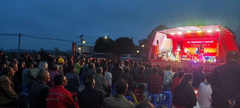 演出在经典花鼓戏《四郎探母》《方钦戏姑》中拉开帷幕。演员们唱腔淳朴、表演生动,戏服绚丽、情绪饱满,赢得现场掌声不断。台下观众热情高涨,纷纷举起手机记录精彩瞬间,叫好声、欢笑声此起彼伏。“送戏下乡”不仅让村民在家门口过足“戏瘾”,更在中秋佳节来临之际,为老人们送上温馨的问候和祝福。