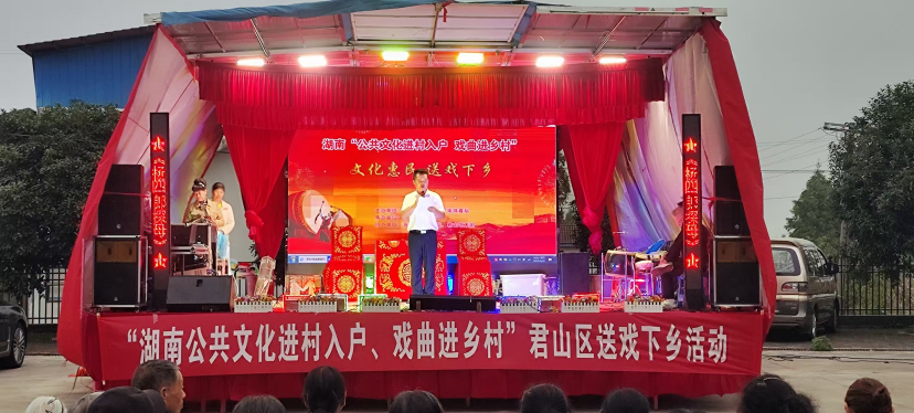 9月18日,君山区文化馆组织文化志愿者走进钱粮湖镇文家湾村,将精彩纷呈的戏曲演出送到村民家门口,让传统艺术浸润乡村生活。