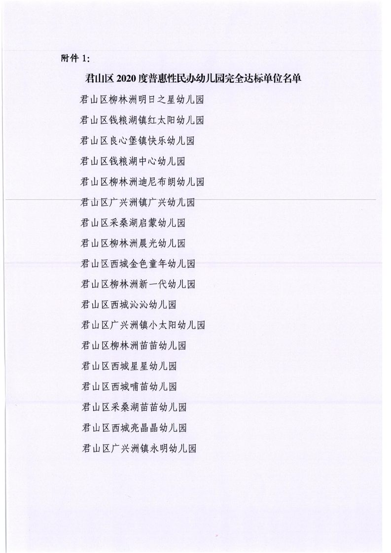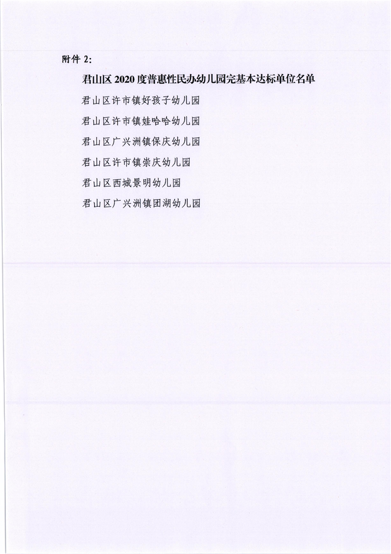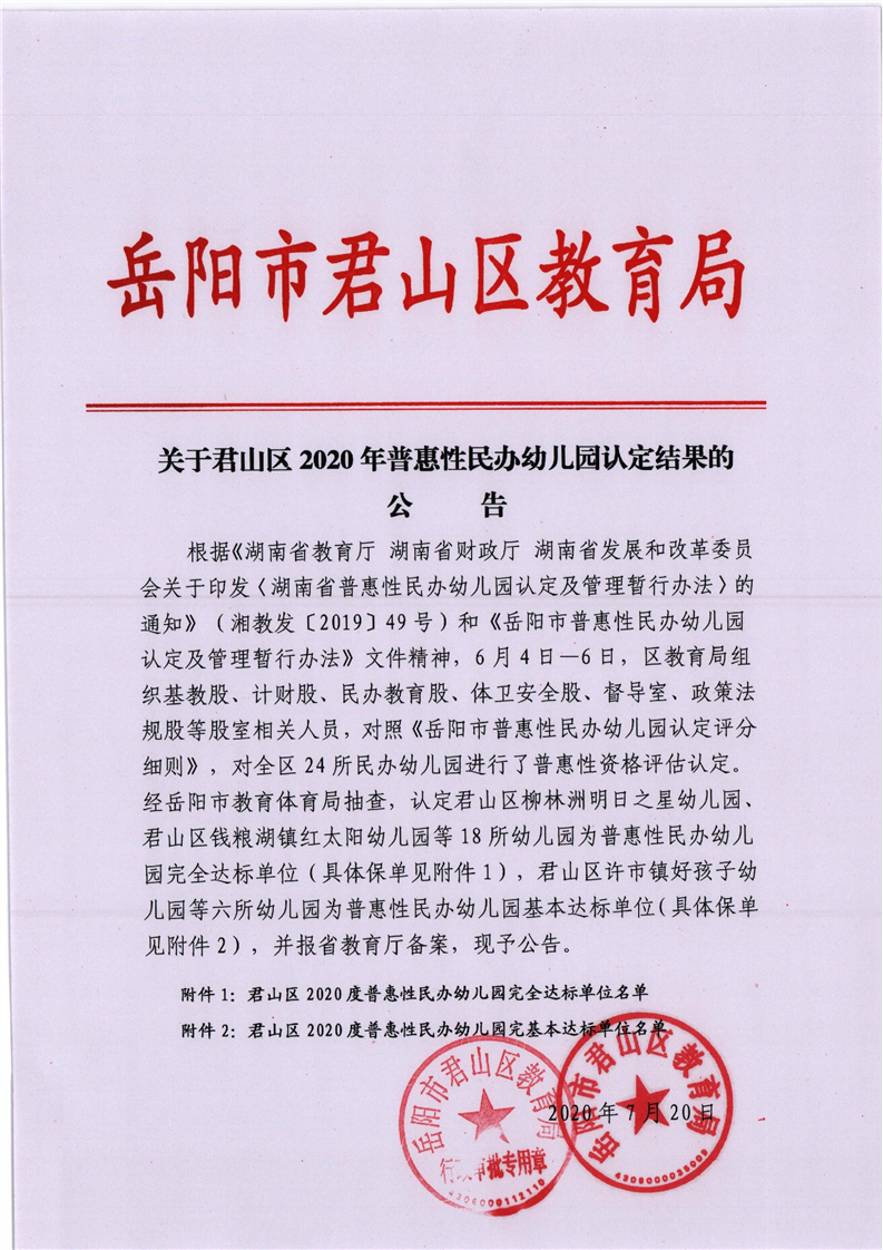 关于君山区2020年普惠性民办幼儿园认定结果的公告