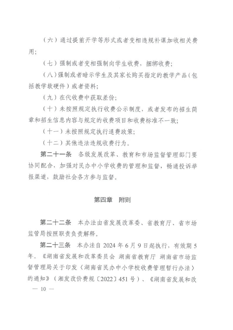 关于印发《湖南省民办中小学收费管理办法》的通知