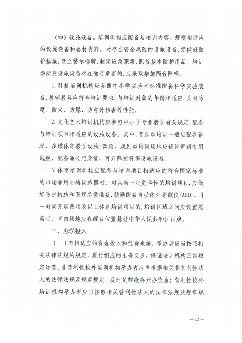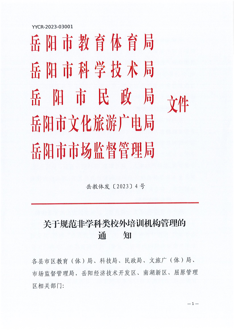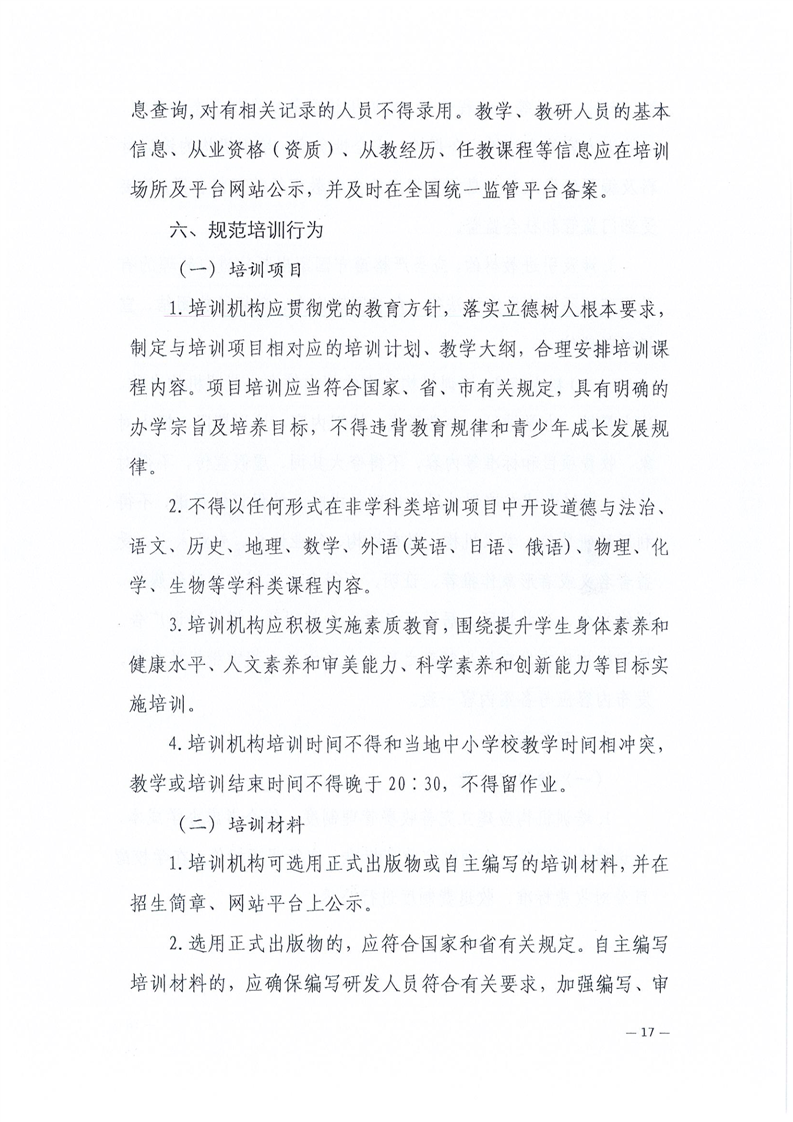 关于规范非学科类校外培训机构管理的通知