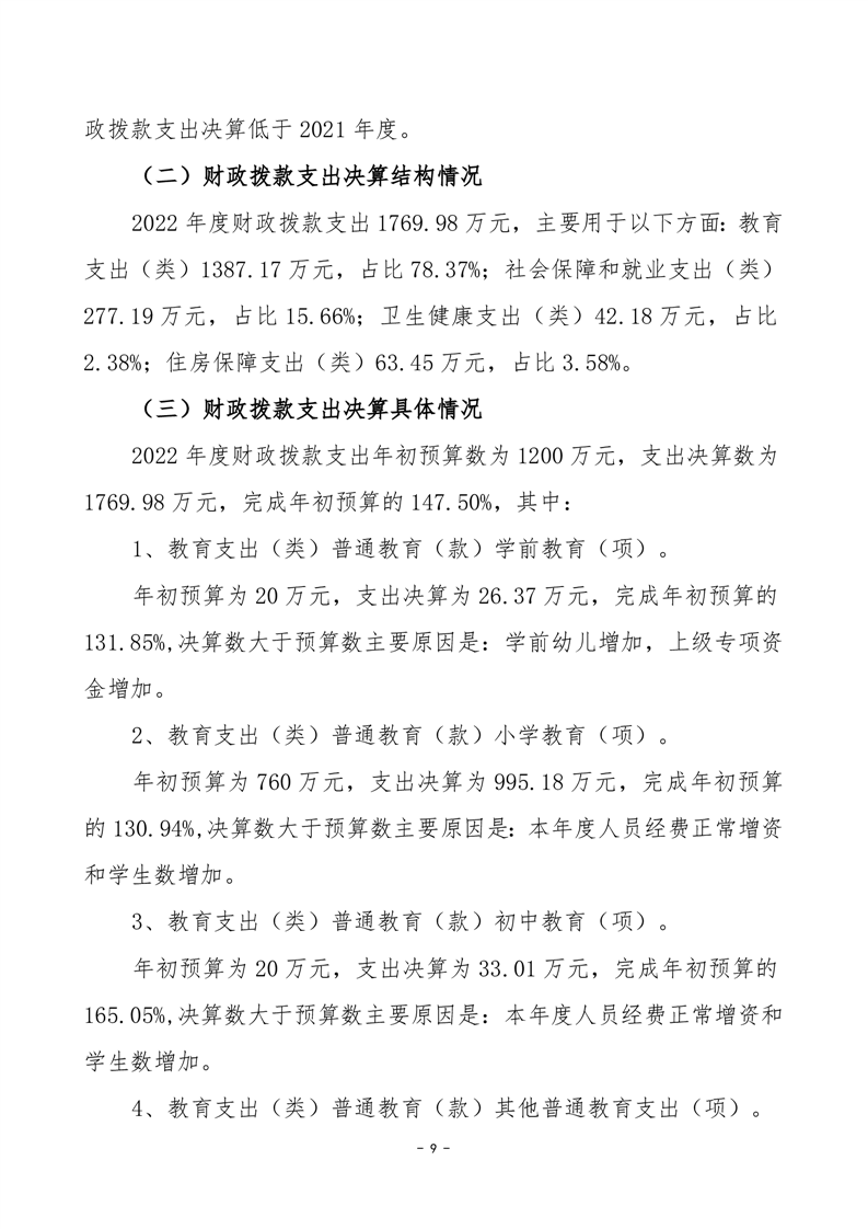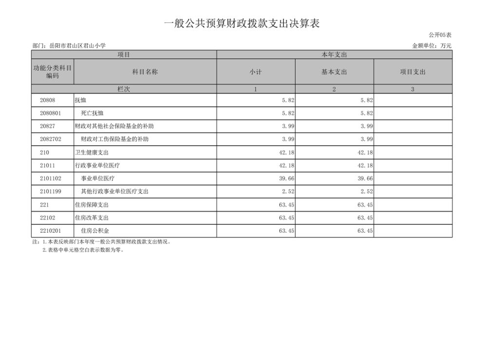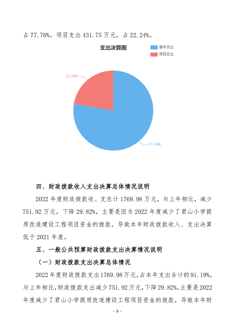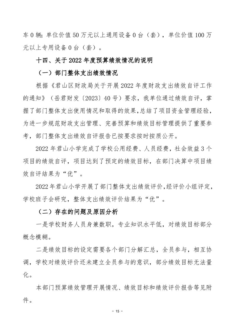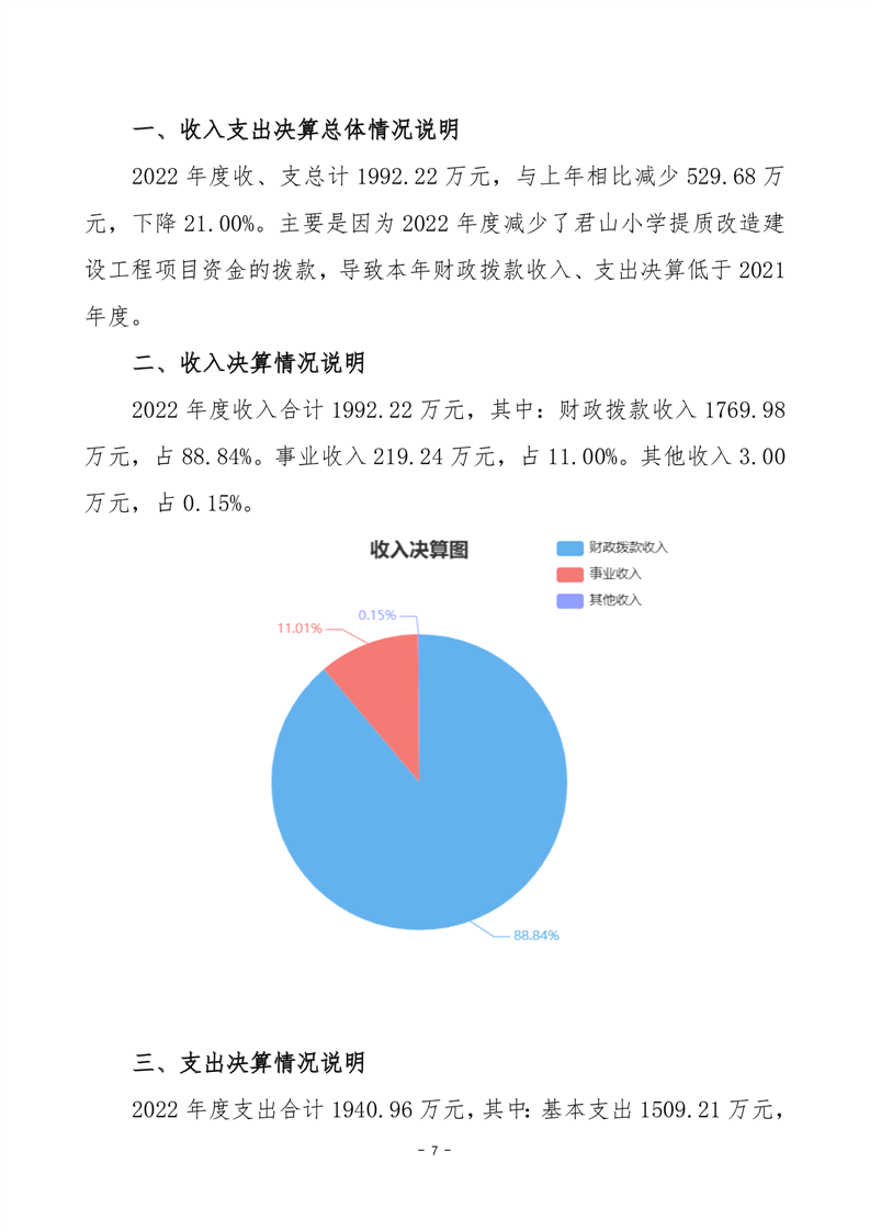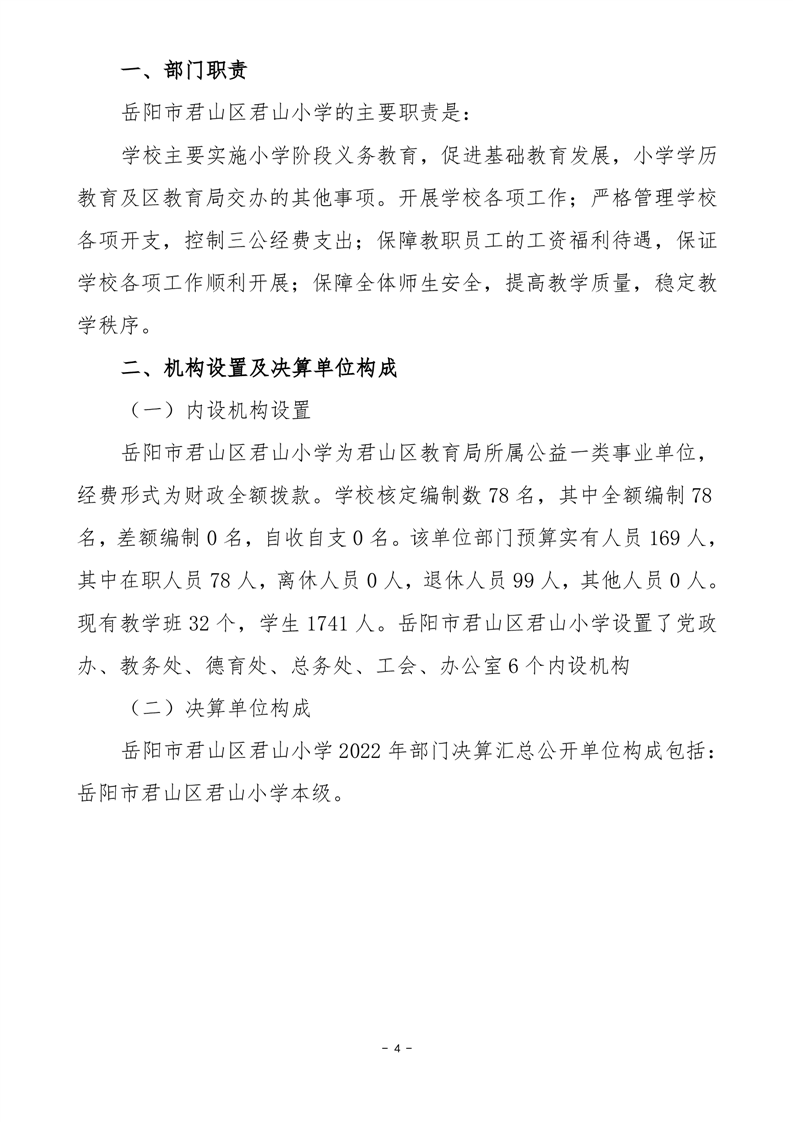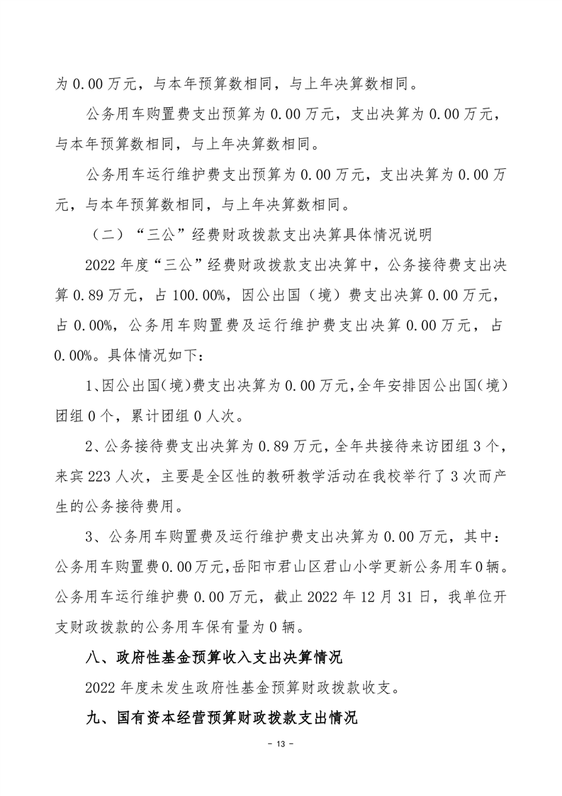 2022年度岳阳市君山区君山小学部门决算公开说明