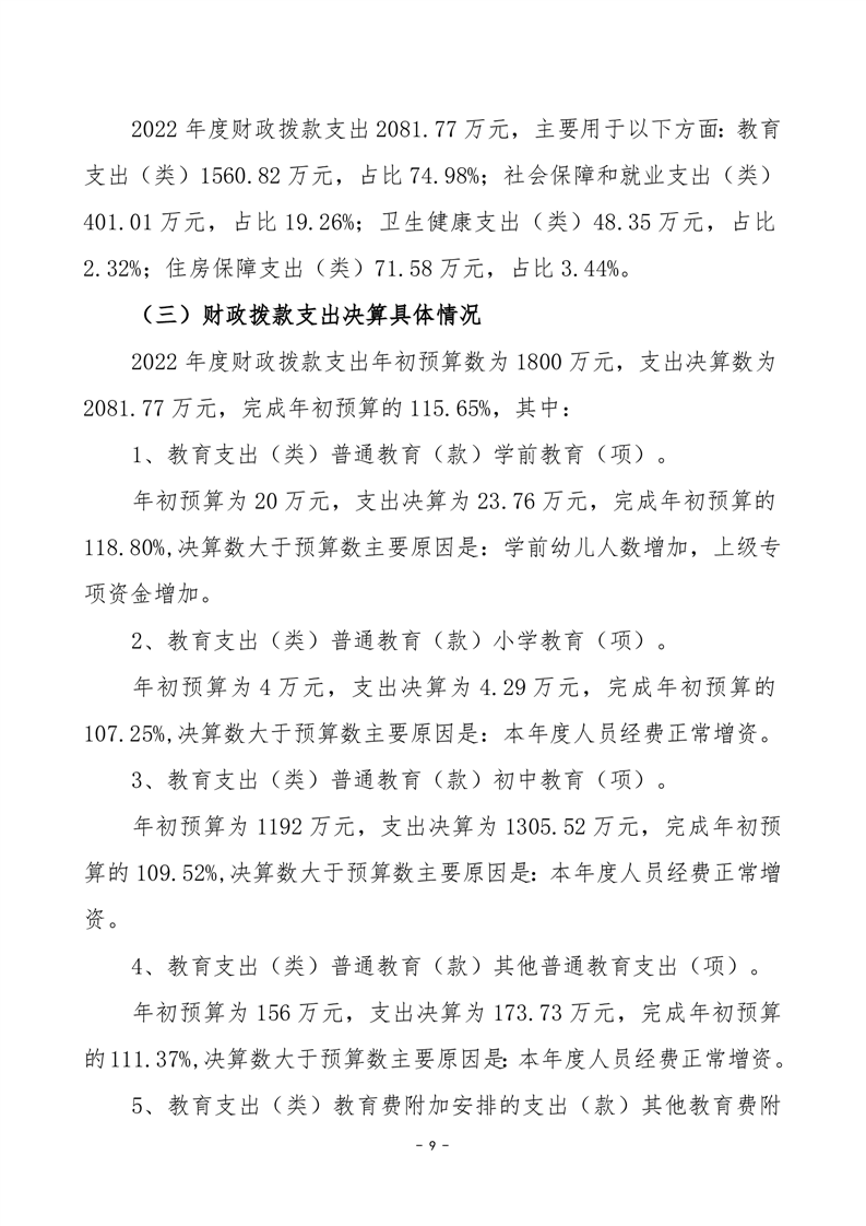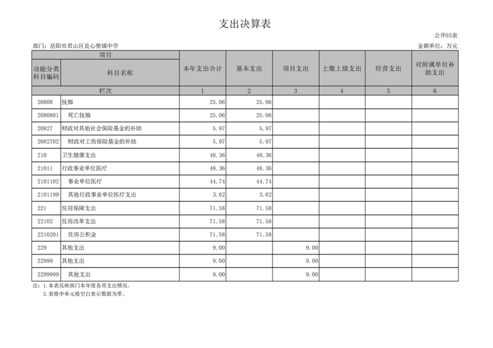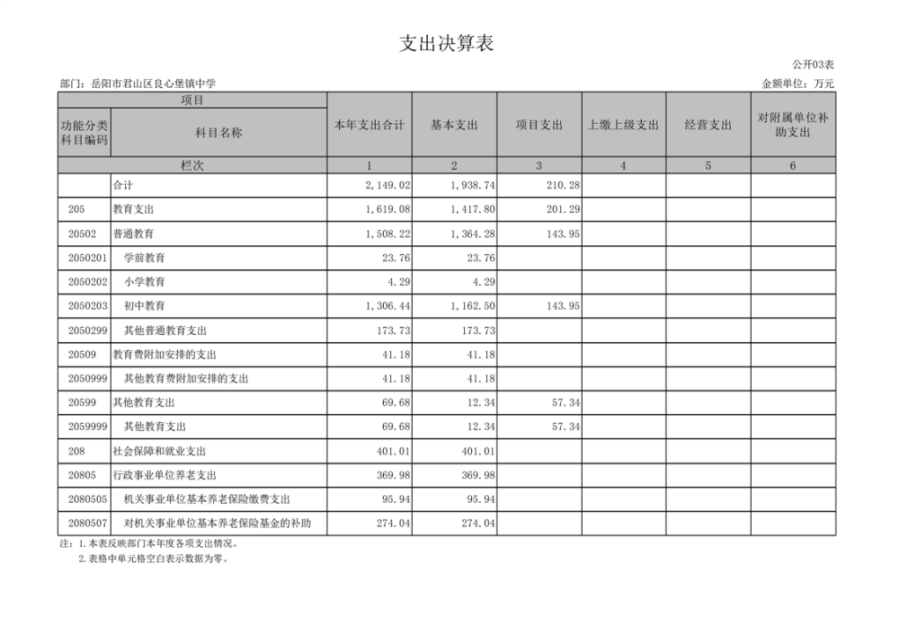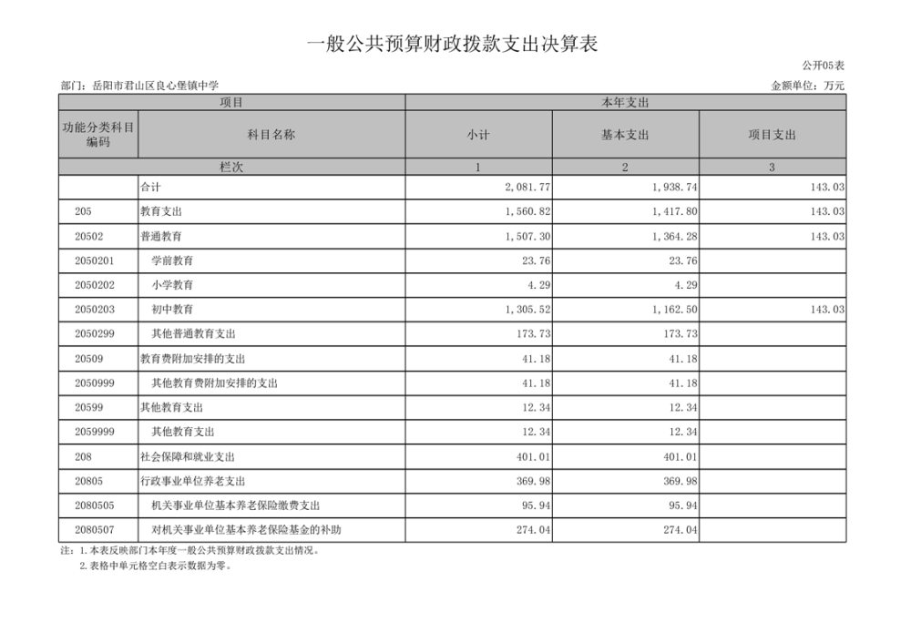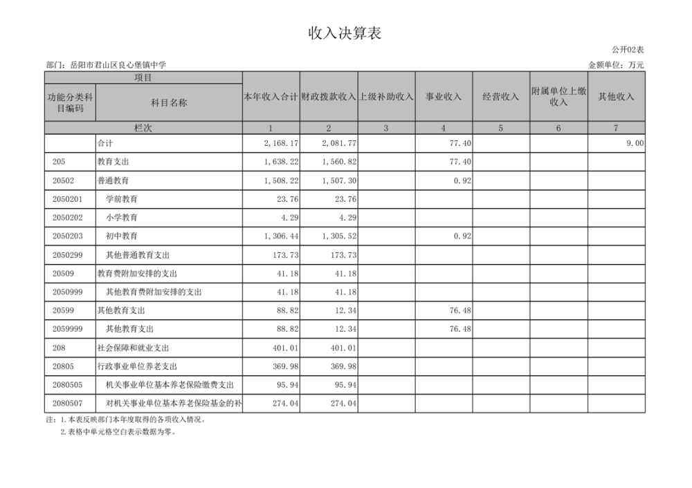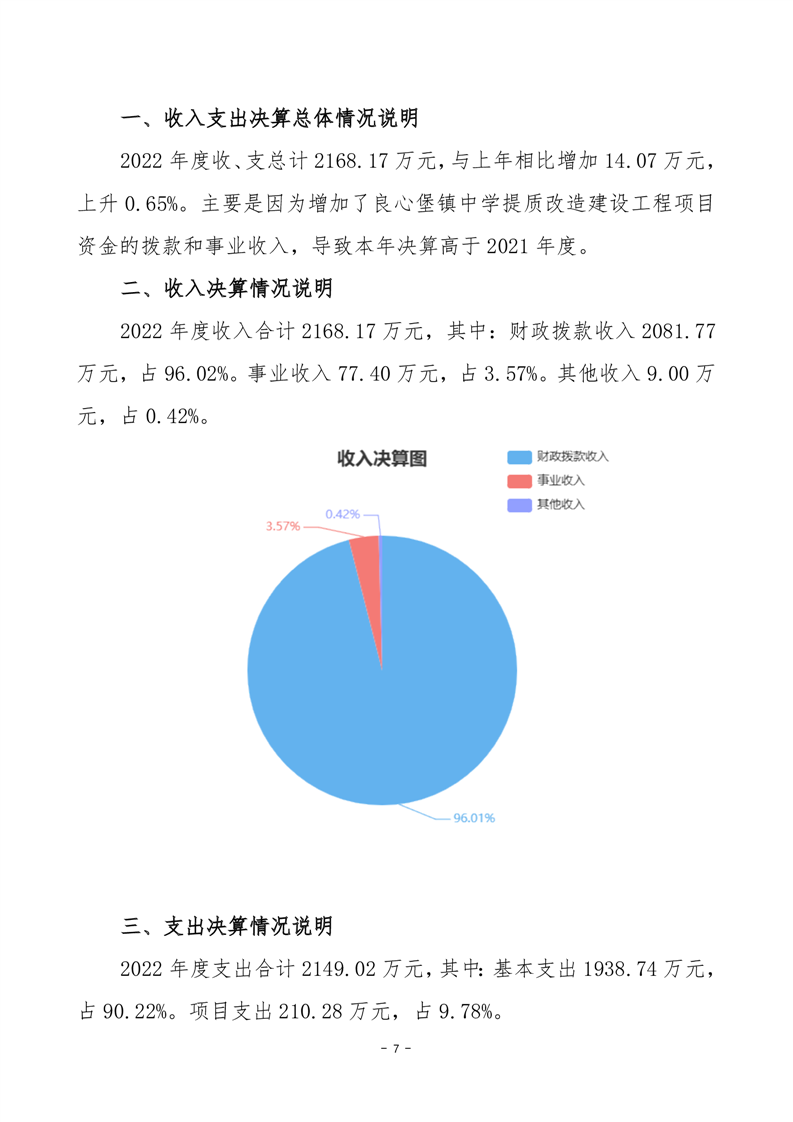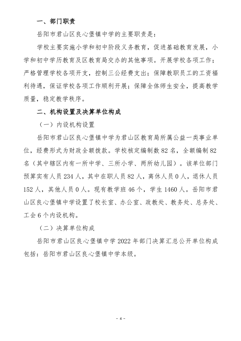 2022年度岳阳市君山区良心堡镇中学部门决算公开说明