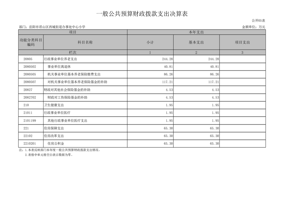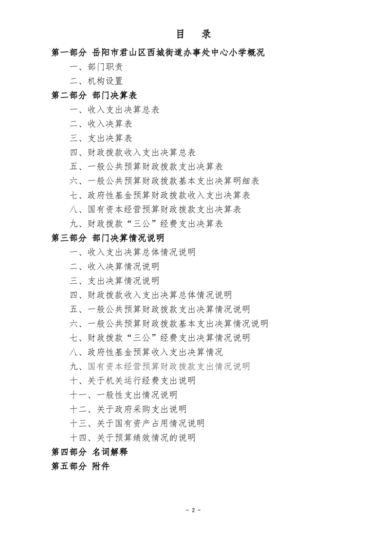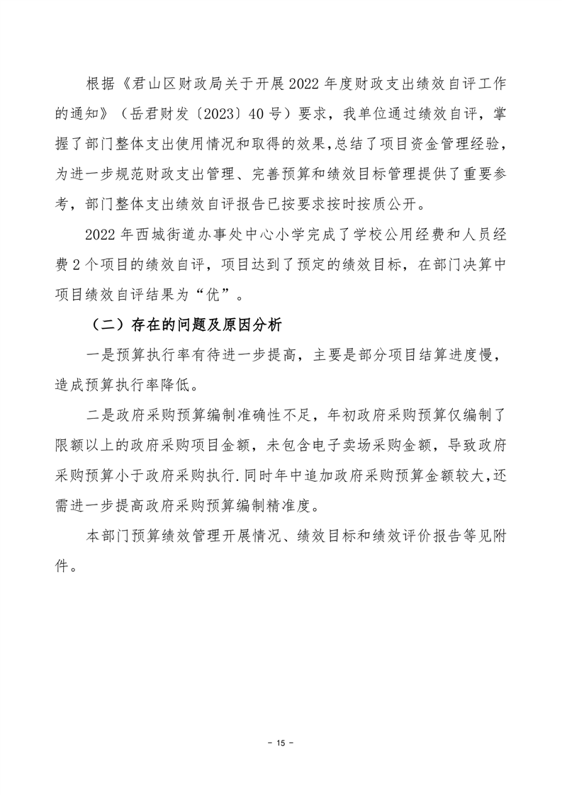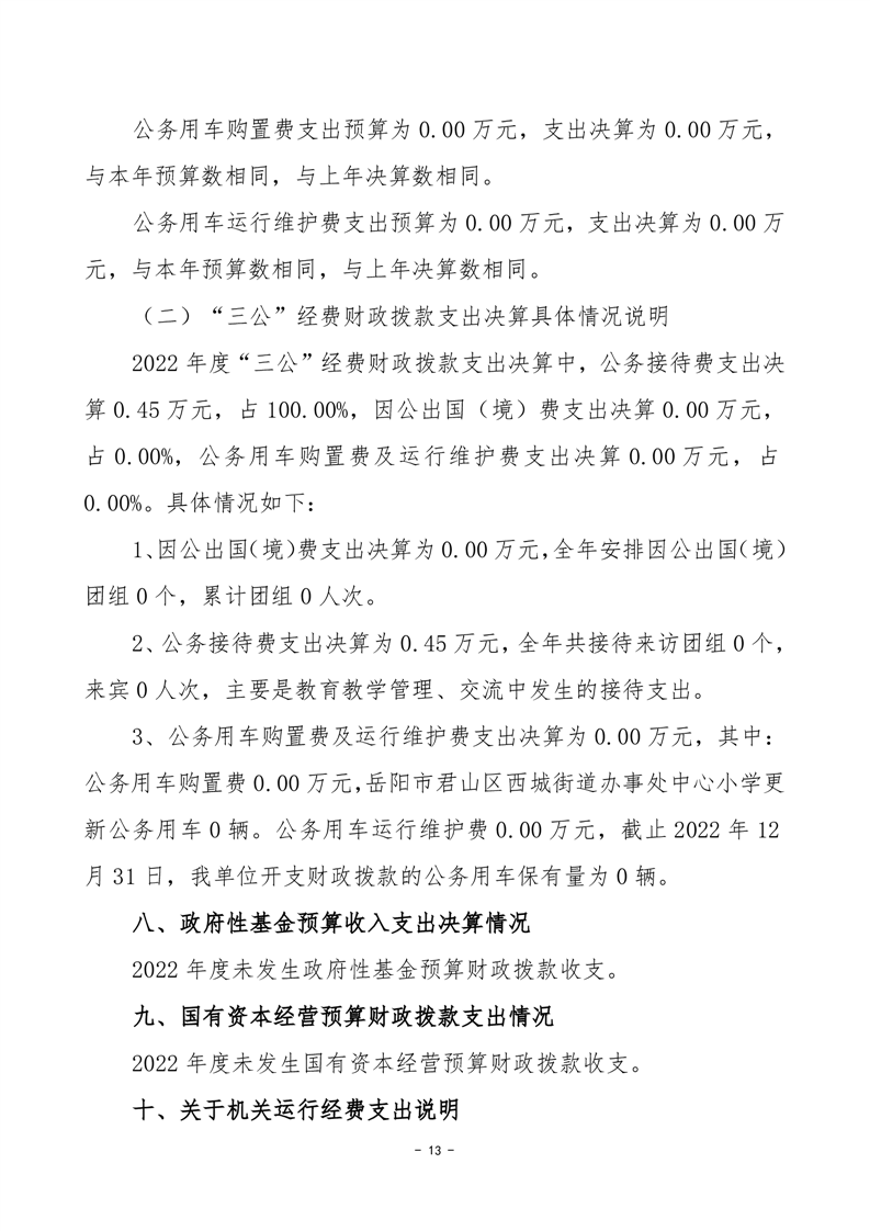 2022年度岳阳市君山区西城街道办事处中心小学部门决算公开说明