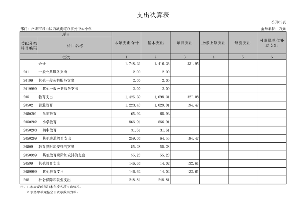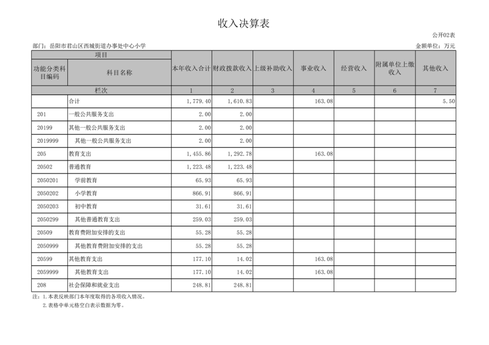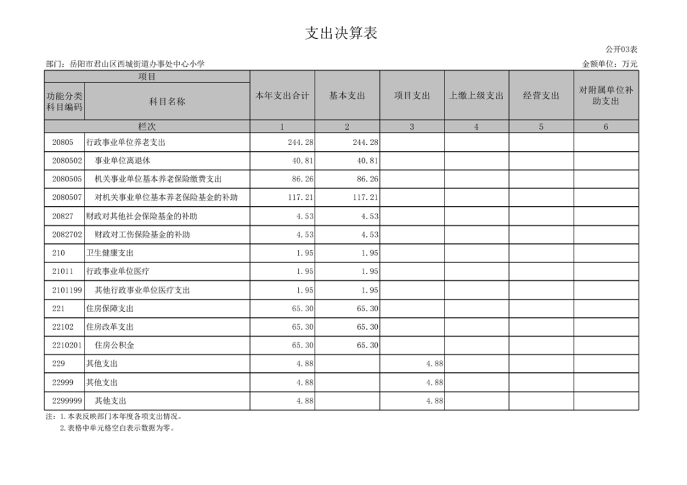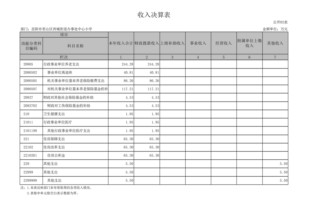 2022年度岳阳市君山区西城街道办事处中心小学部门决算公开说明