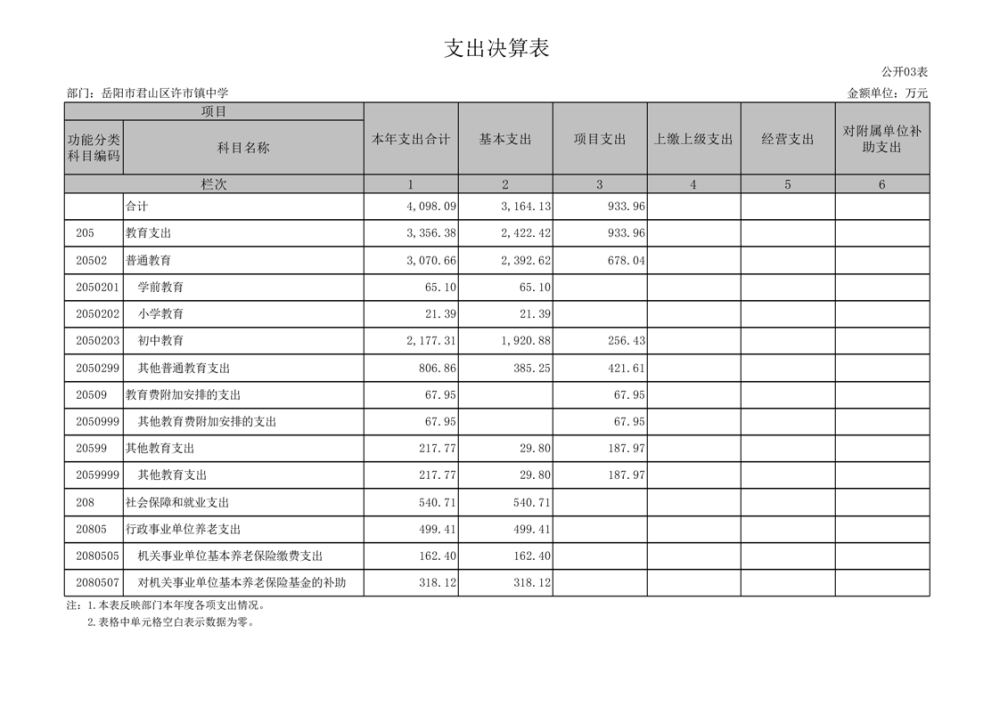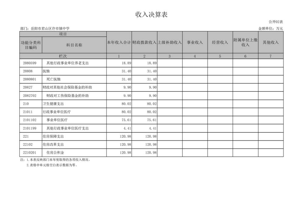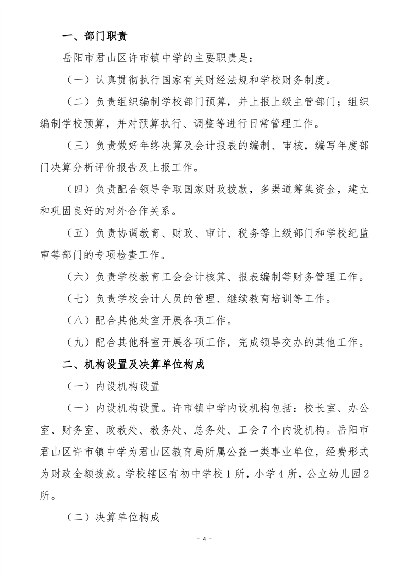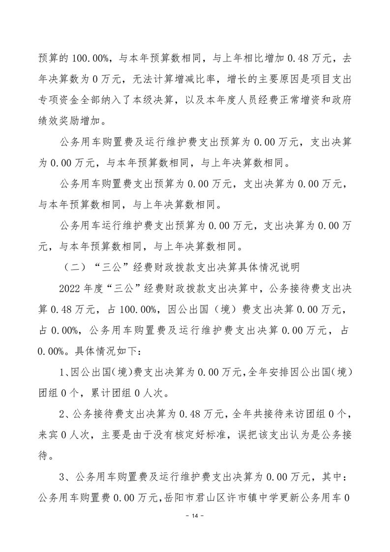 2022年度岳阳市君山区许市镇中学部门决算公开说明