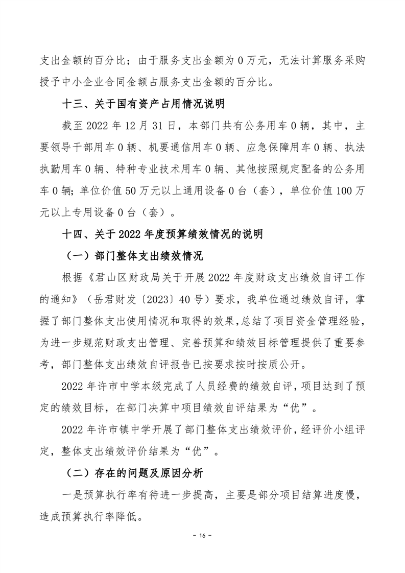 2022年度岳阳市君山区许市镇中学整体支出绩效自评报告.docx