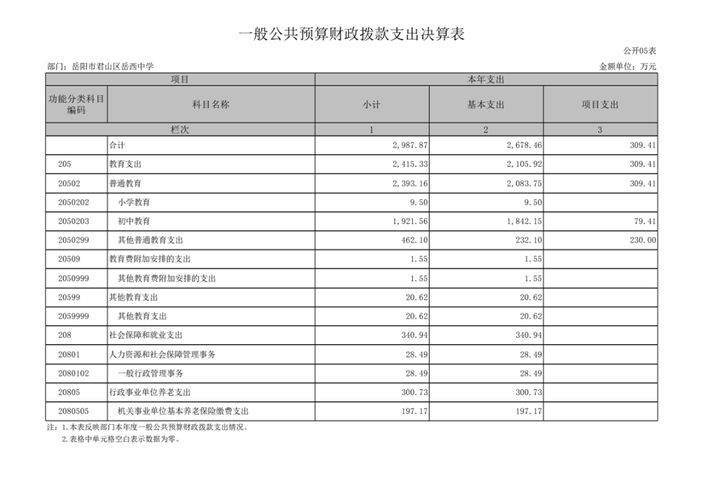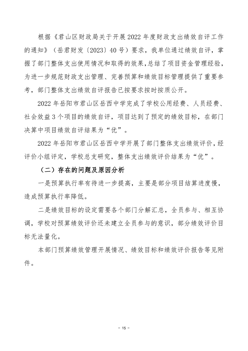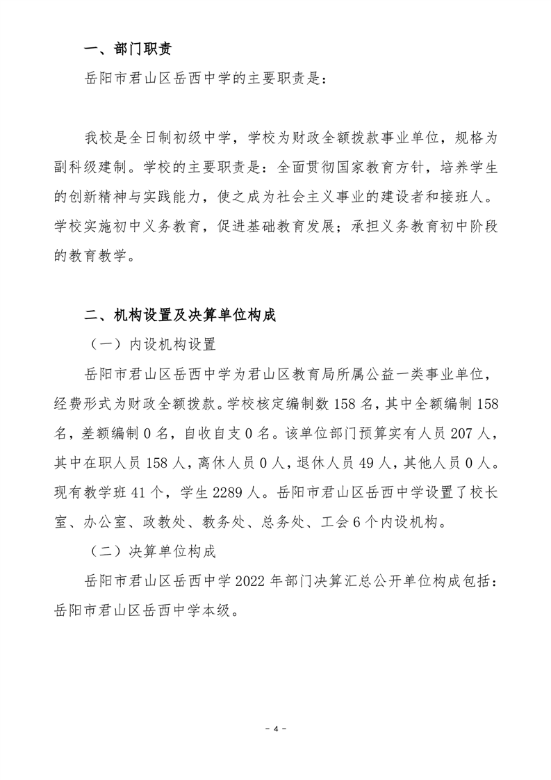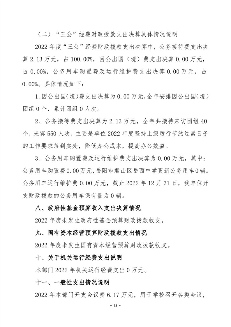 2022年度岳阳市君山区岳西中学部门决算公开说明