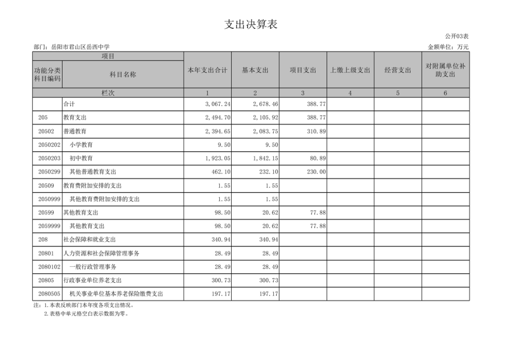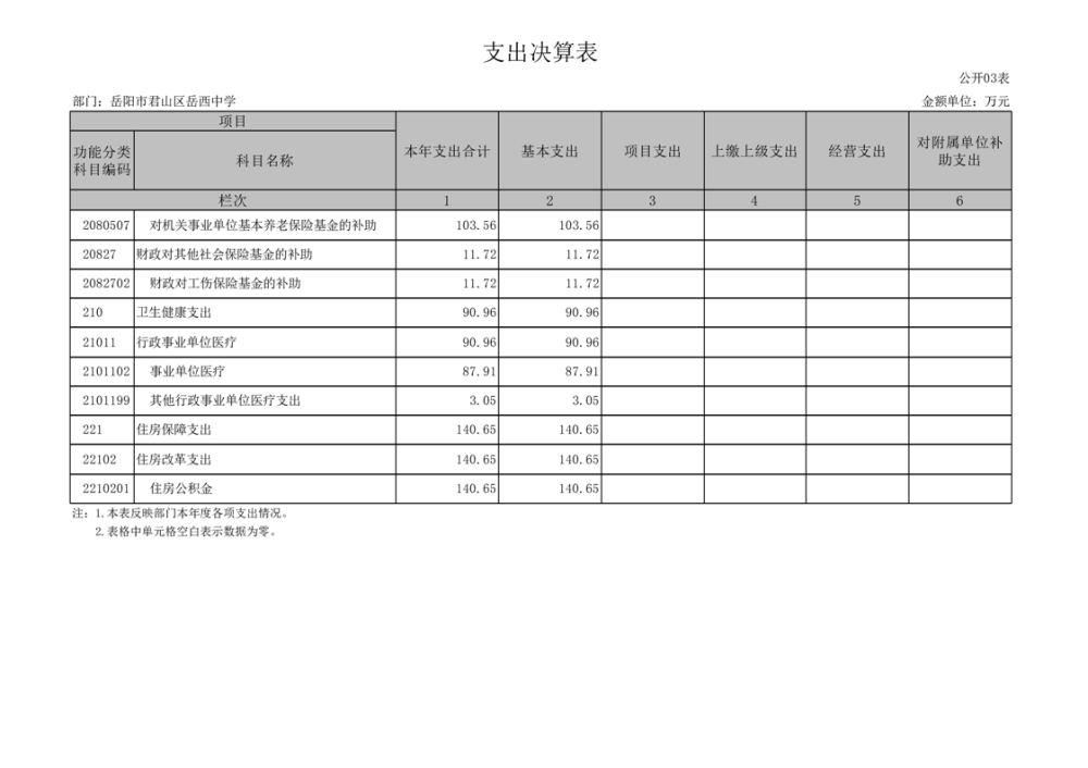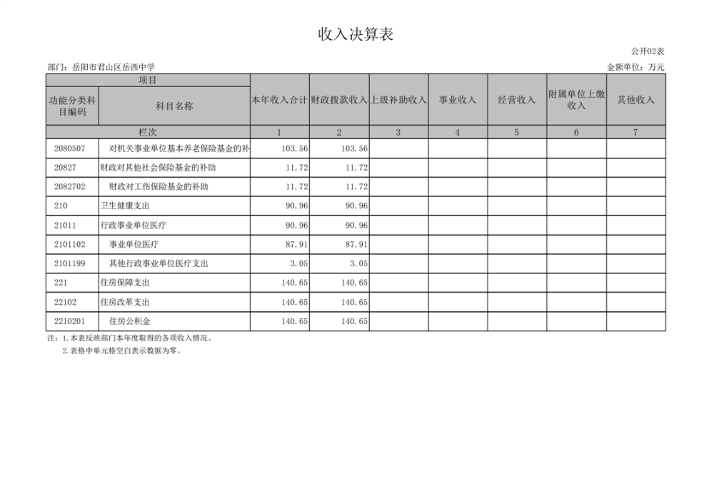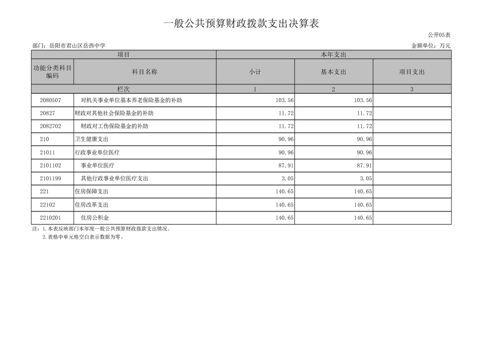 2022年度岳阳市君山区岳西中学部门决算公开说明