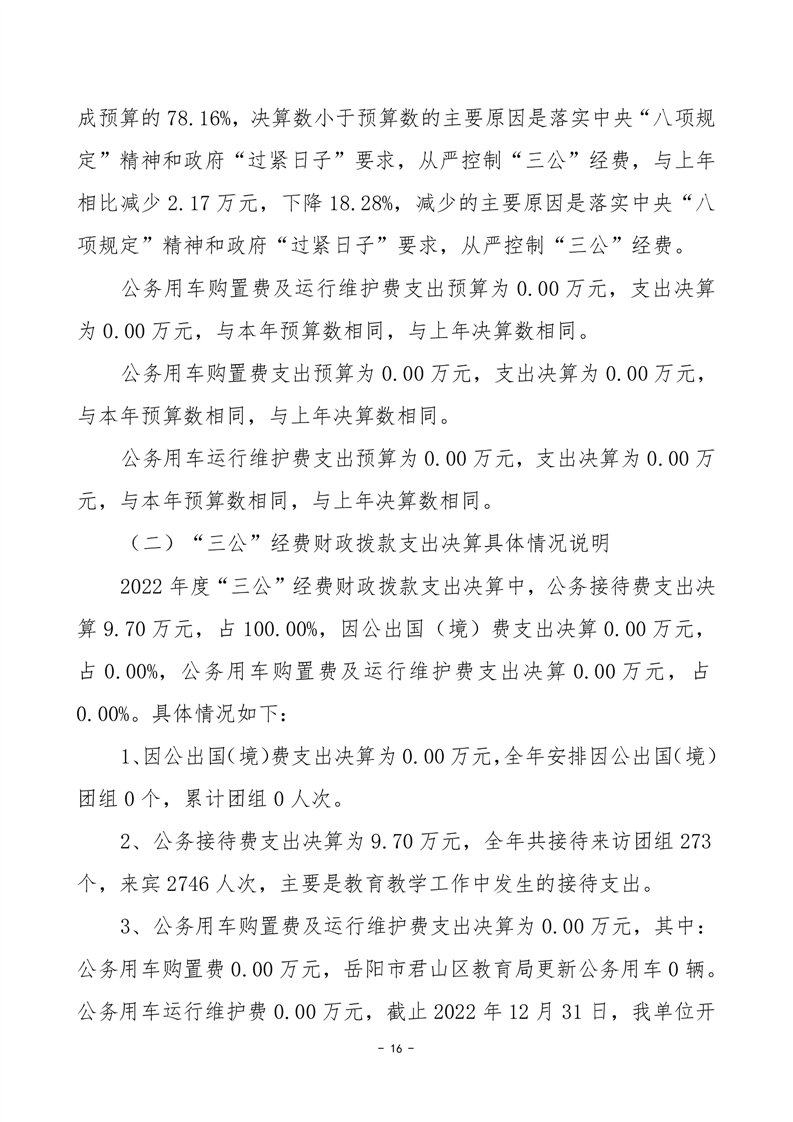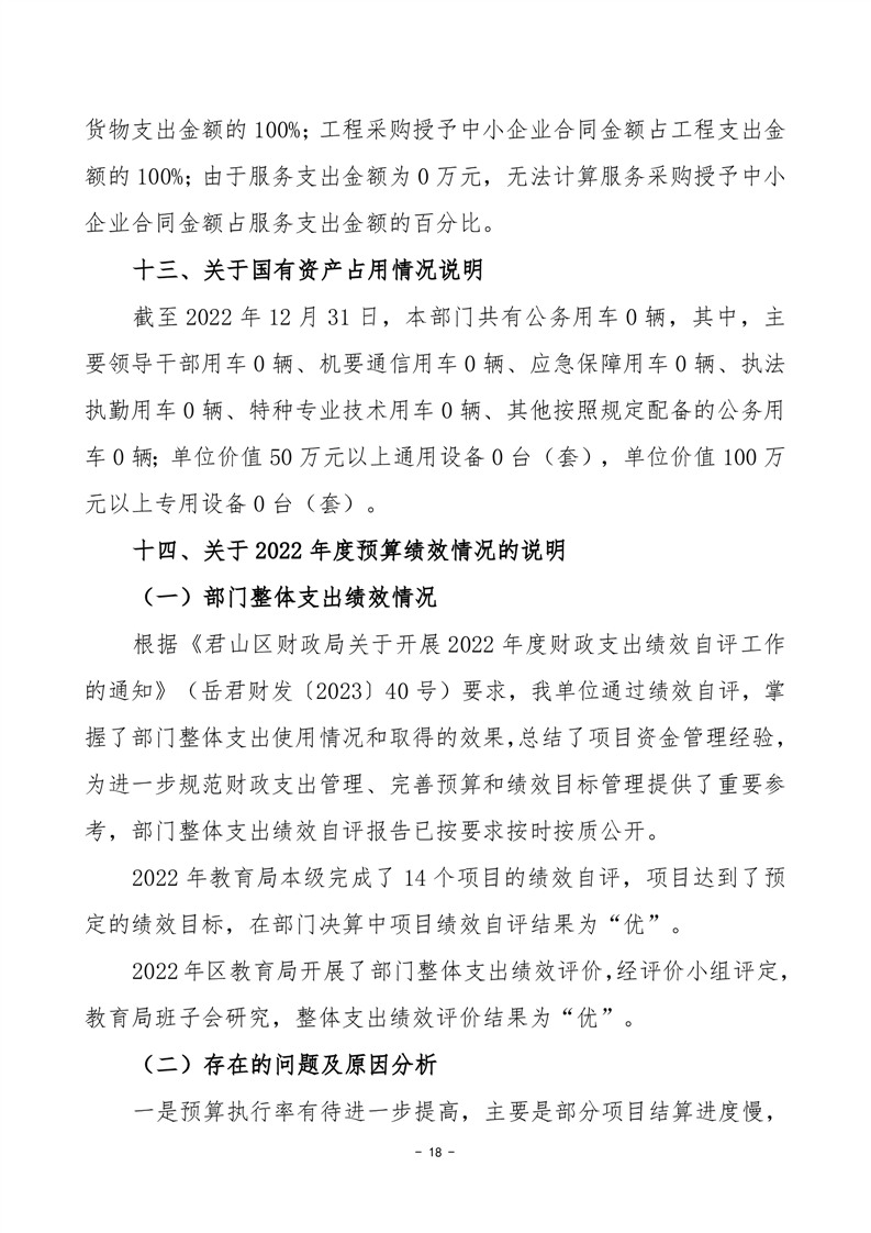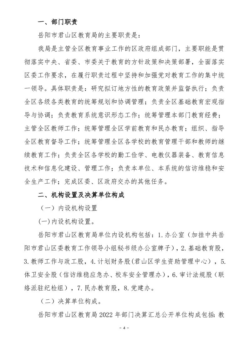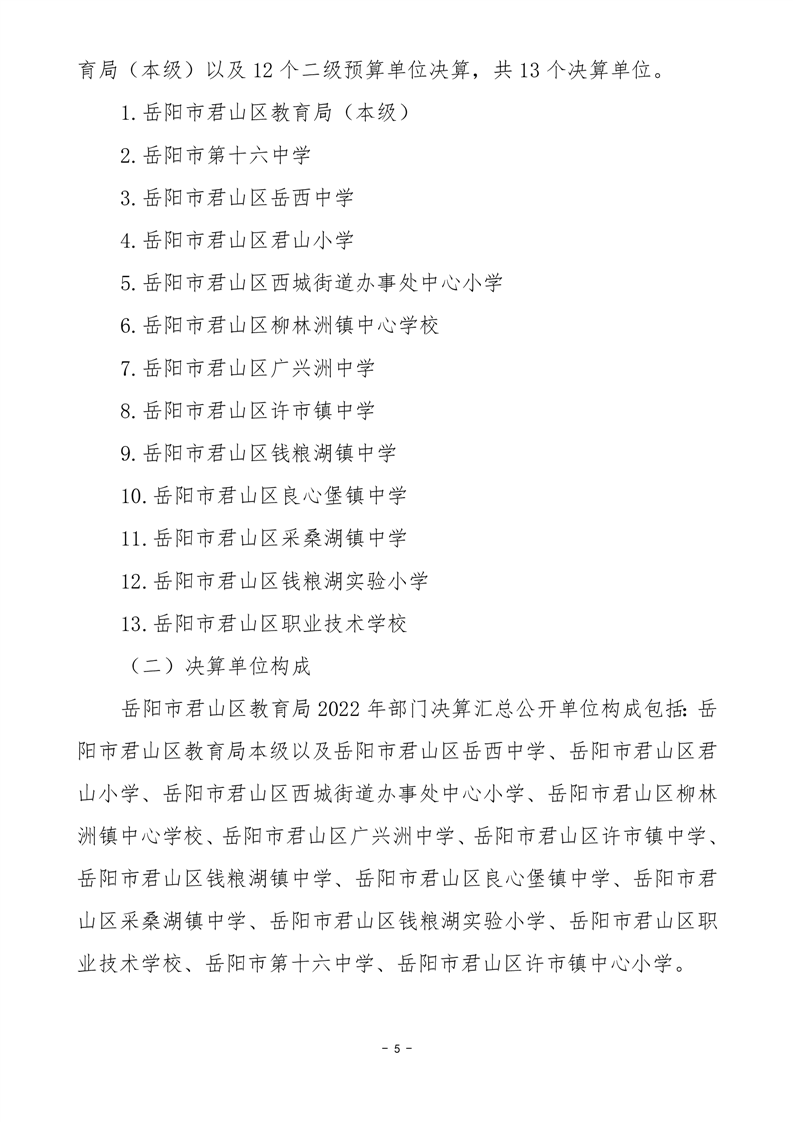 2022年度岳阳市君山区教育局(汇总)部门决算公开说明