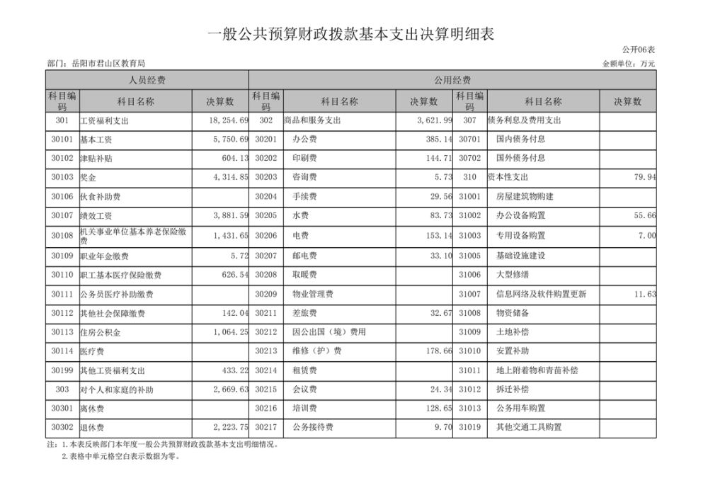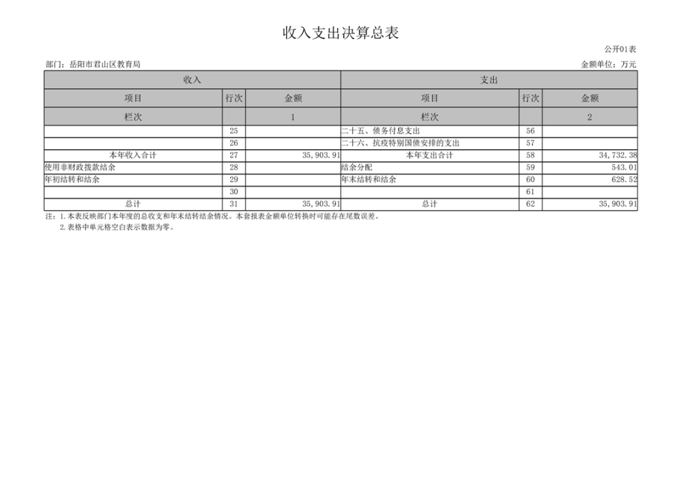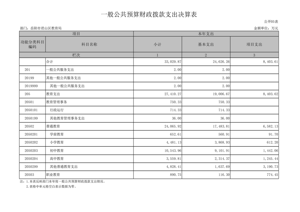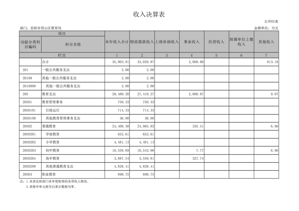 2022年度岳阳市君山区教育局(汇总)部门决算公开说明