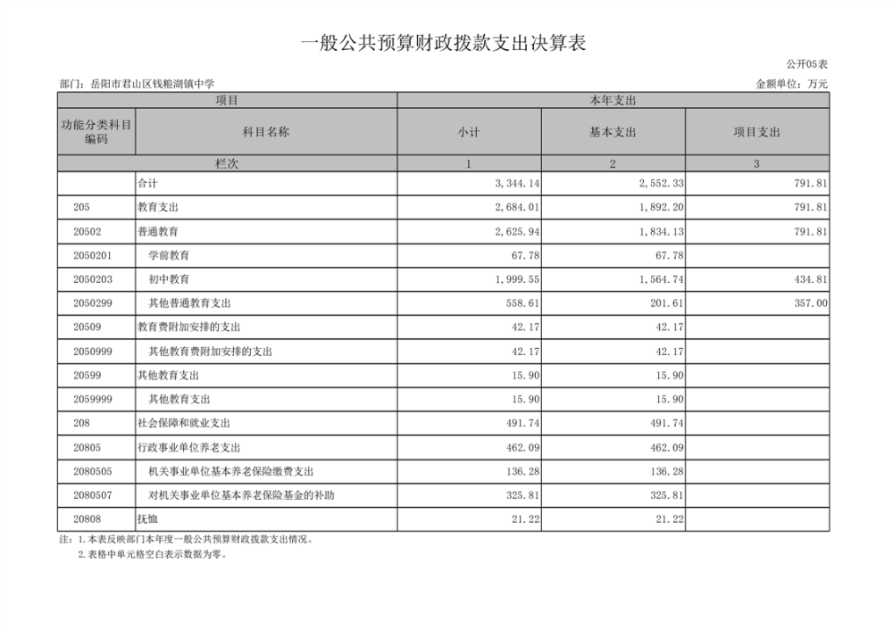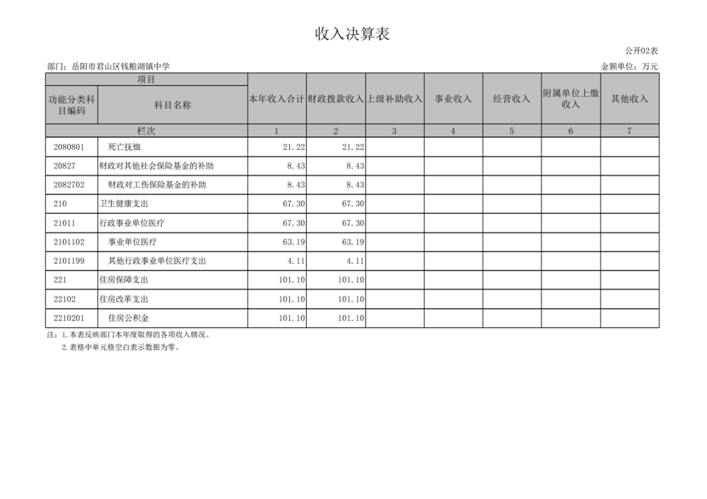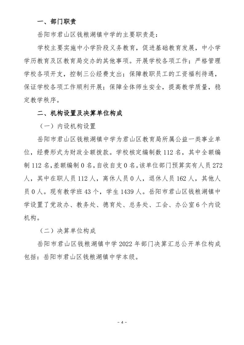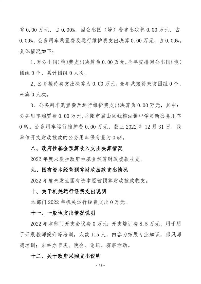 2022年度岳阳市君山区钱粮湖镇中学部门决算公开说明