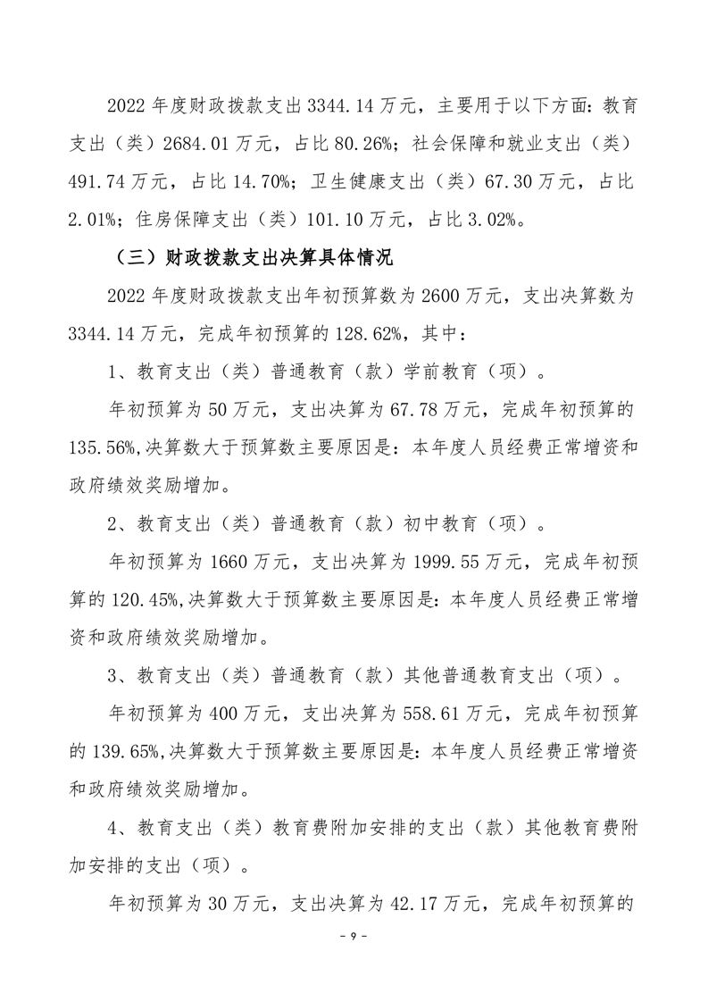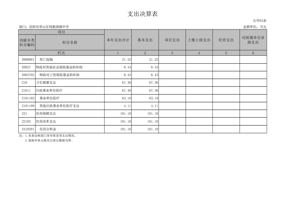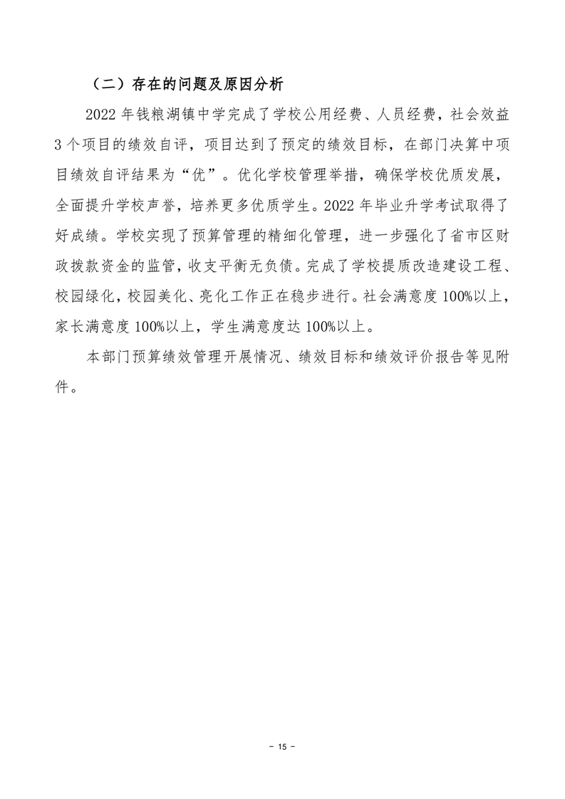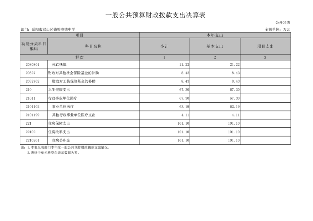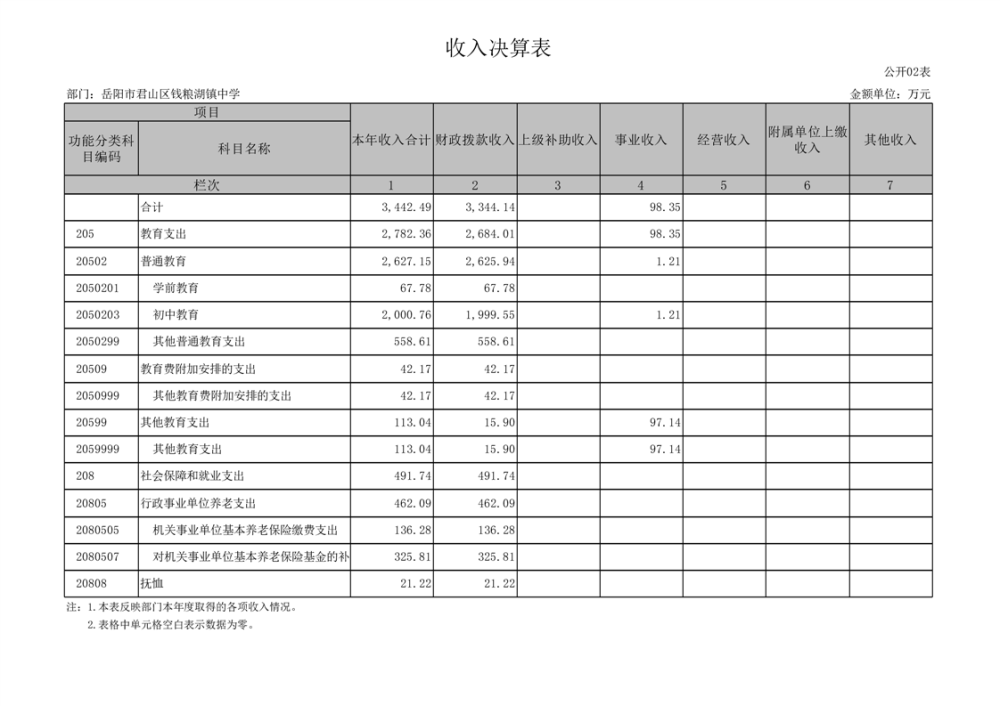 2022年度岳阳市君山区钱粮湖镇中学部门决算公开说明