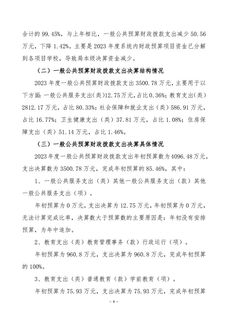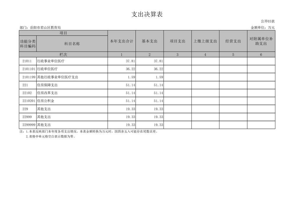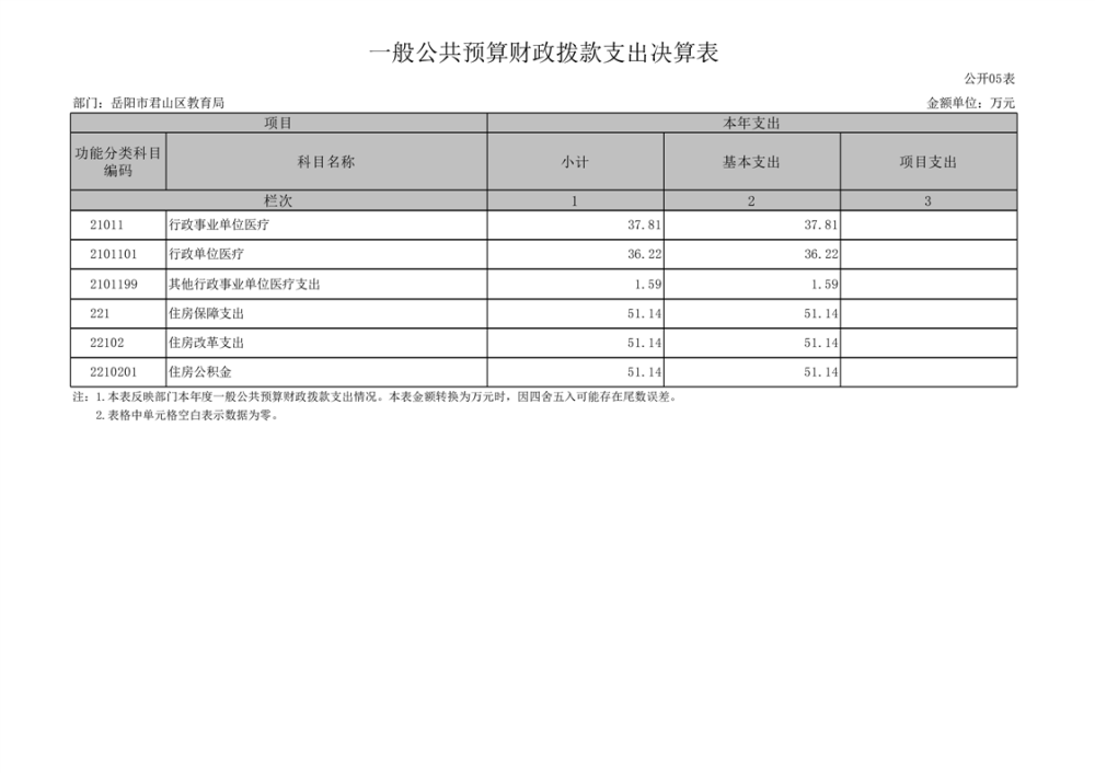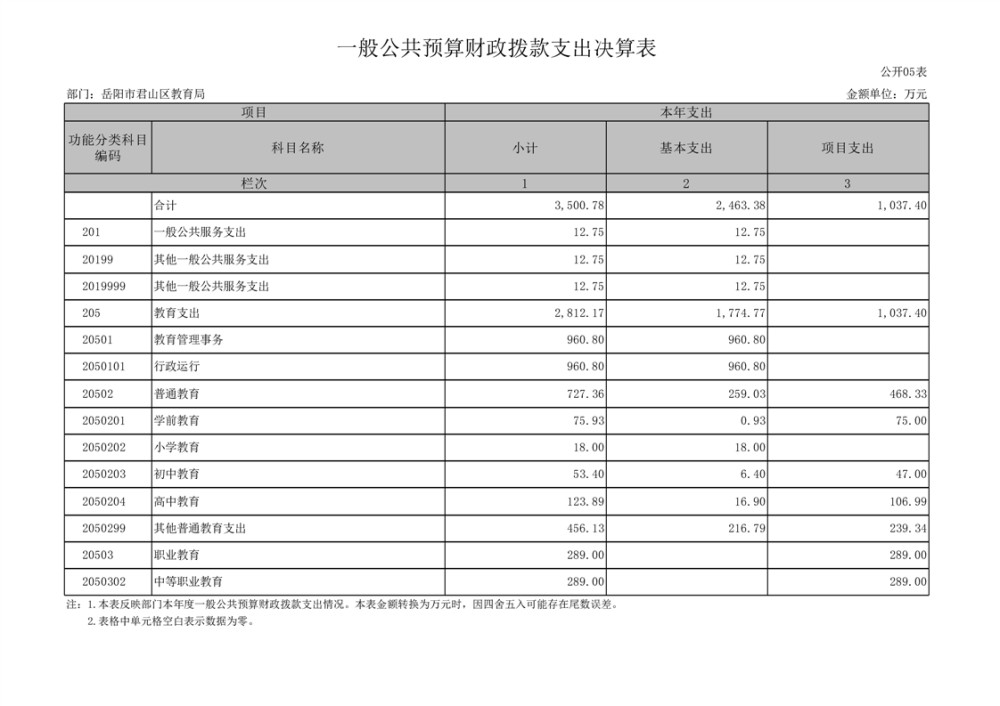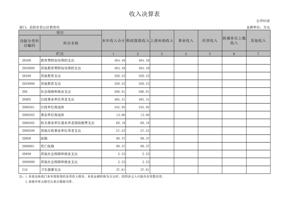 2023年度岳阳市君山区教育局(本级)部门决算公开