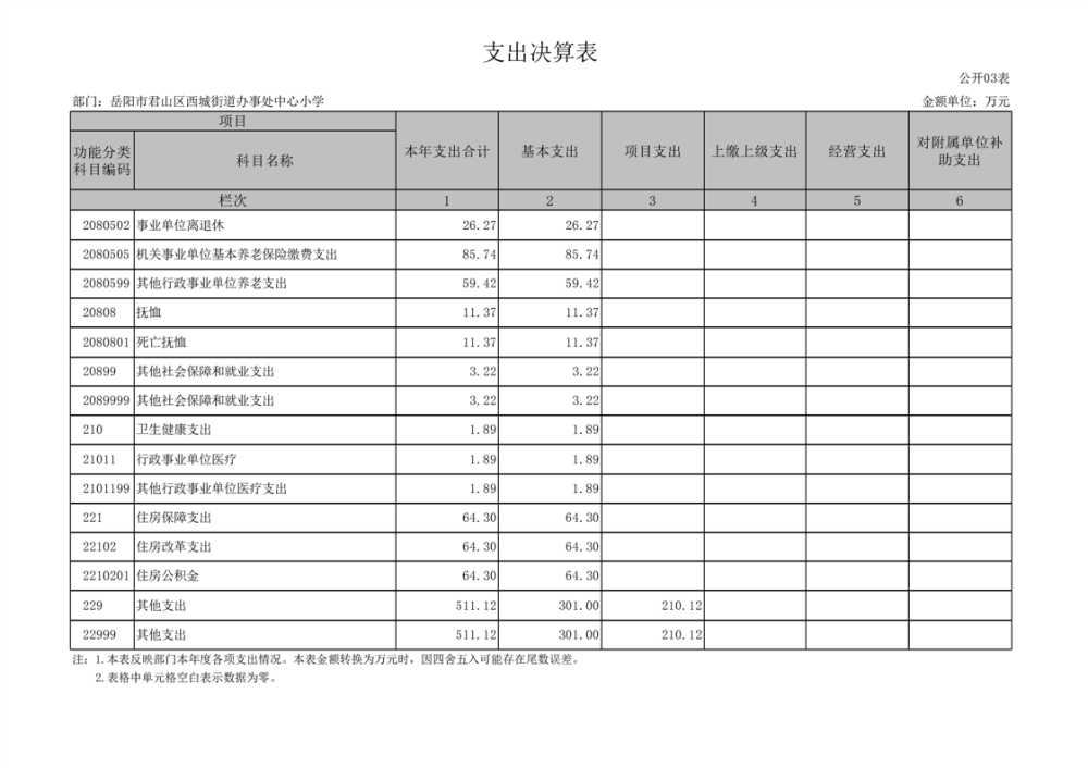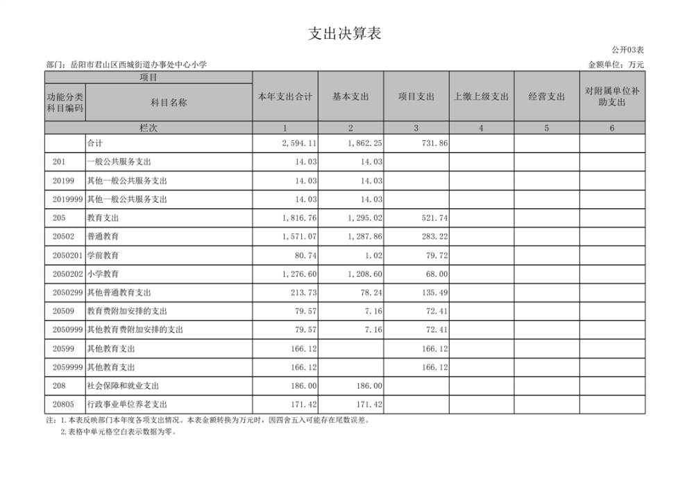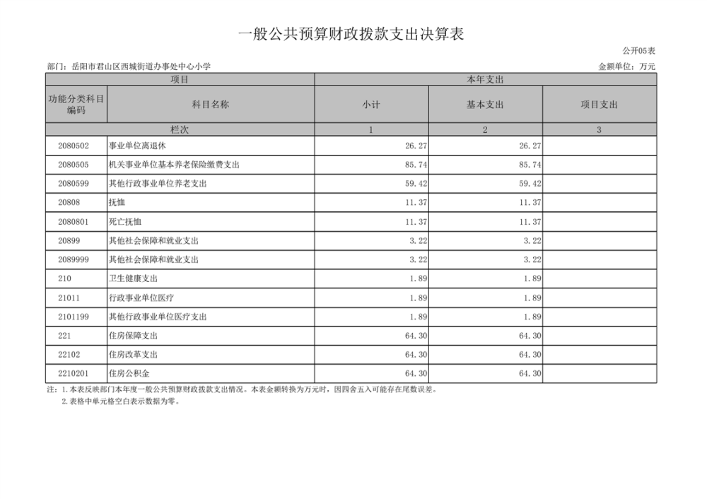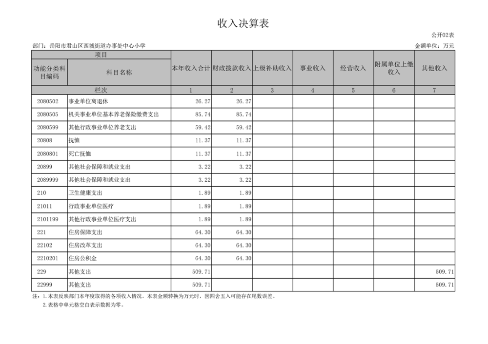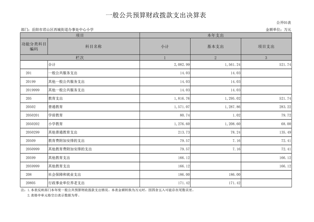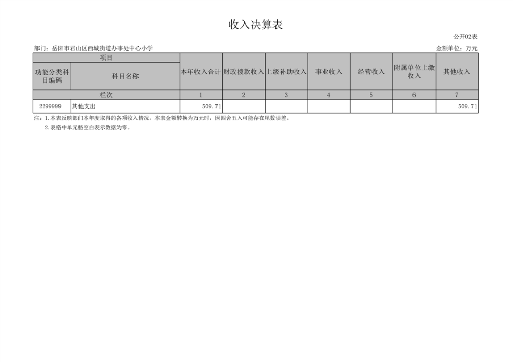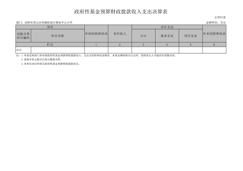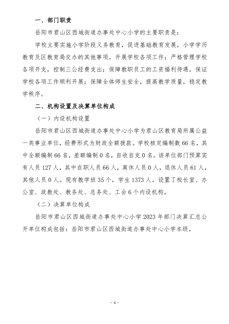 2023年度岳阳市君山区西城街道办事处中心小学部门决算公开