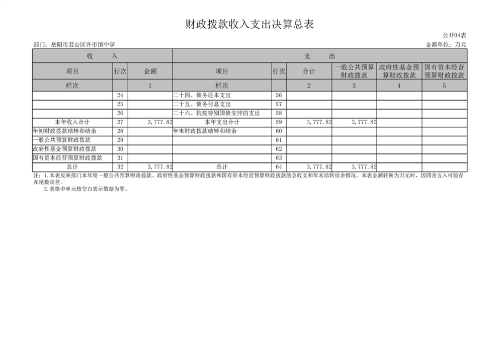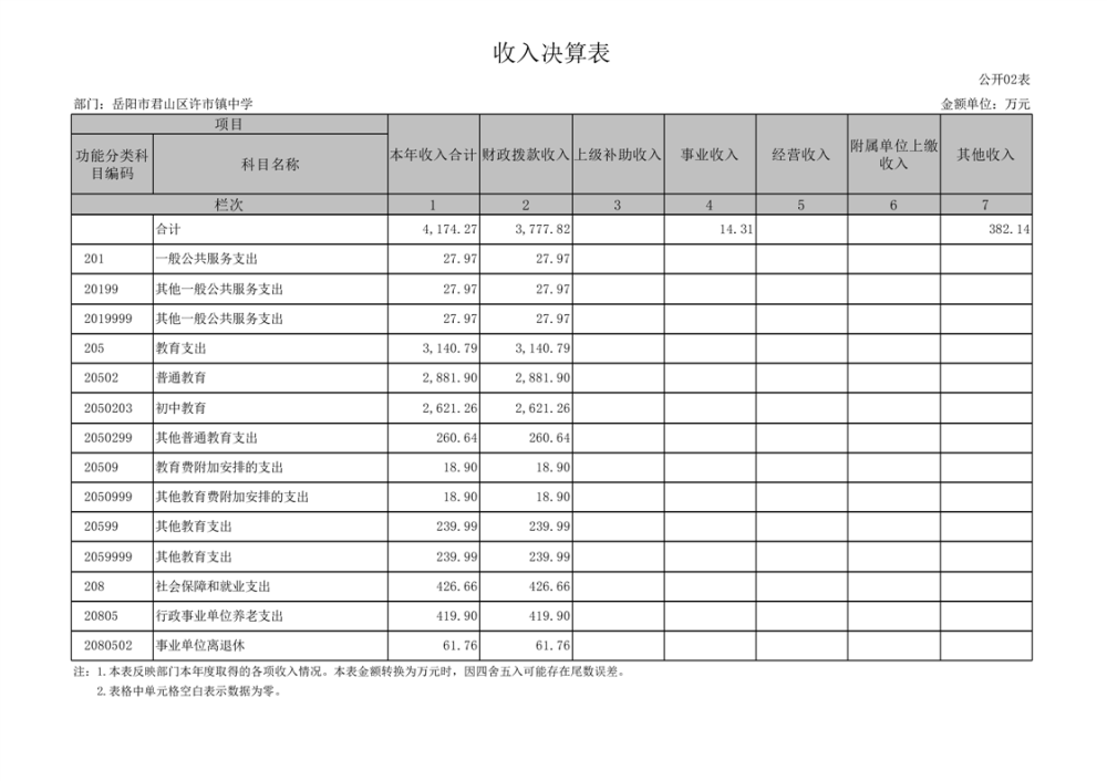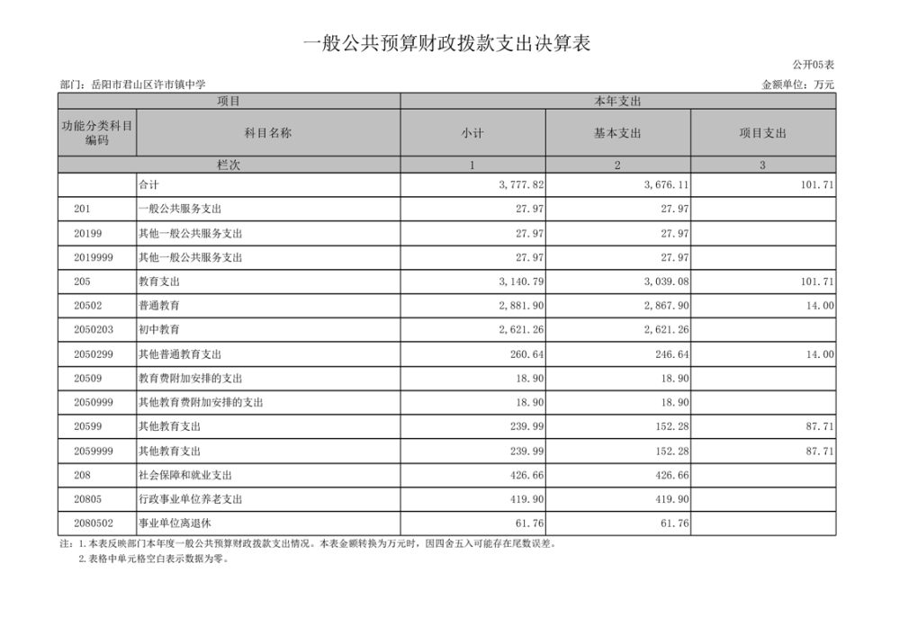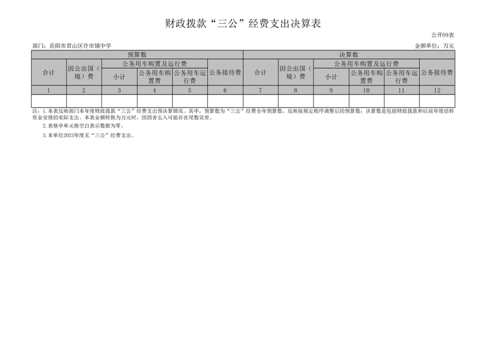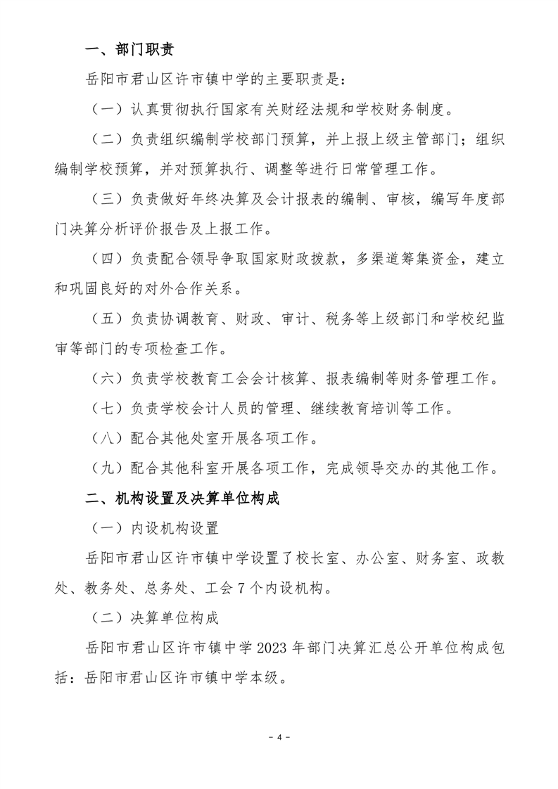 2023年度岳阳市君山区许市镇中学部门决算公开