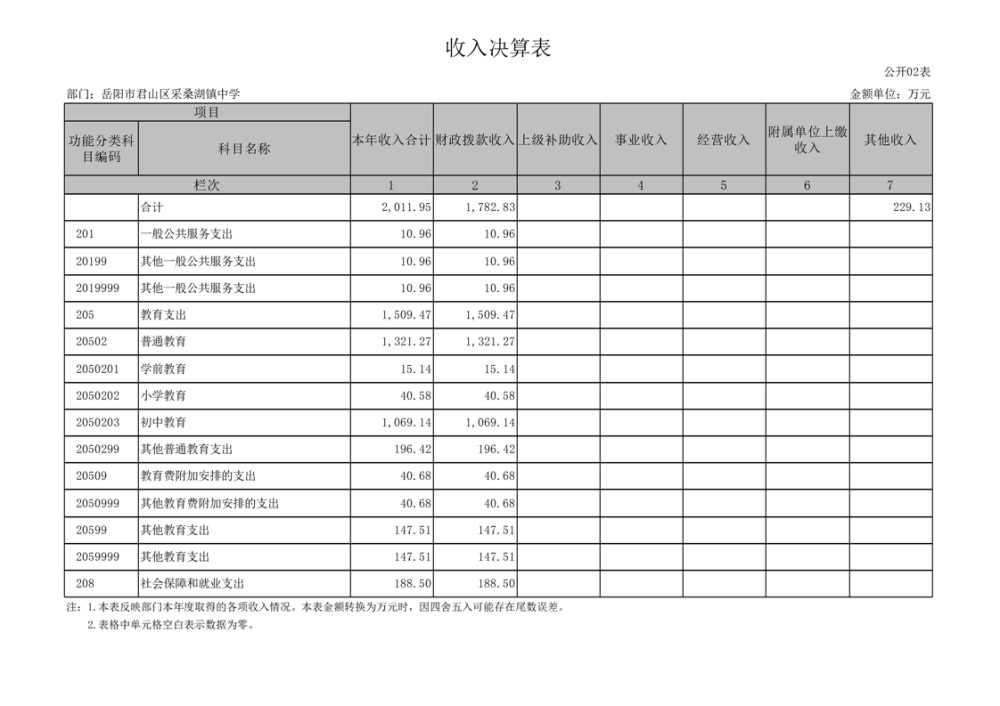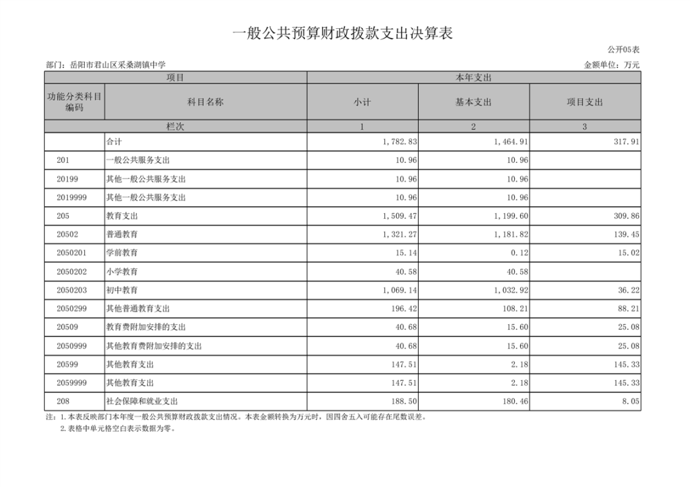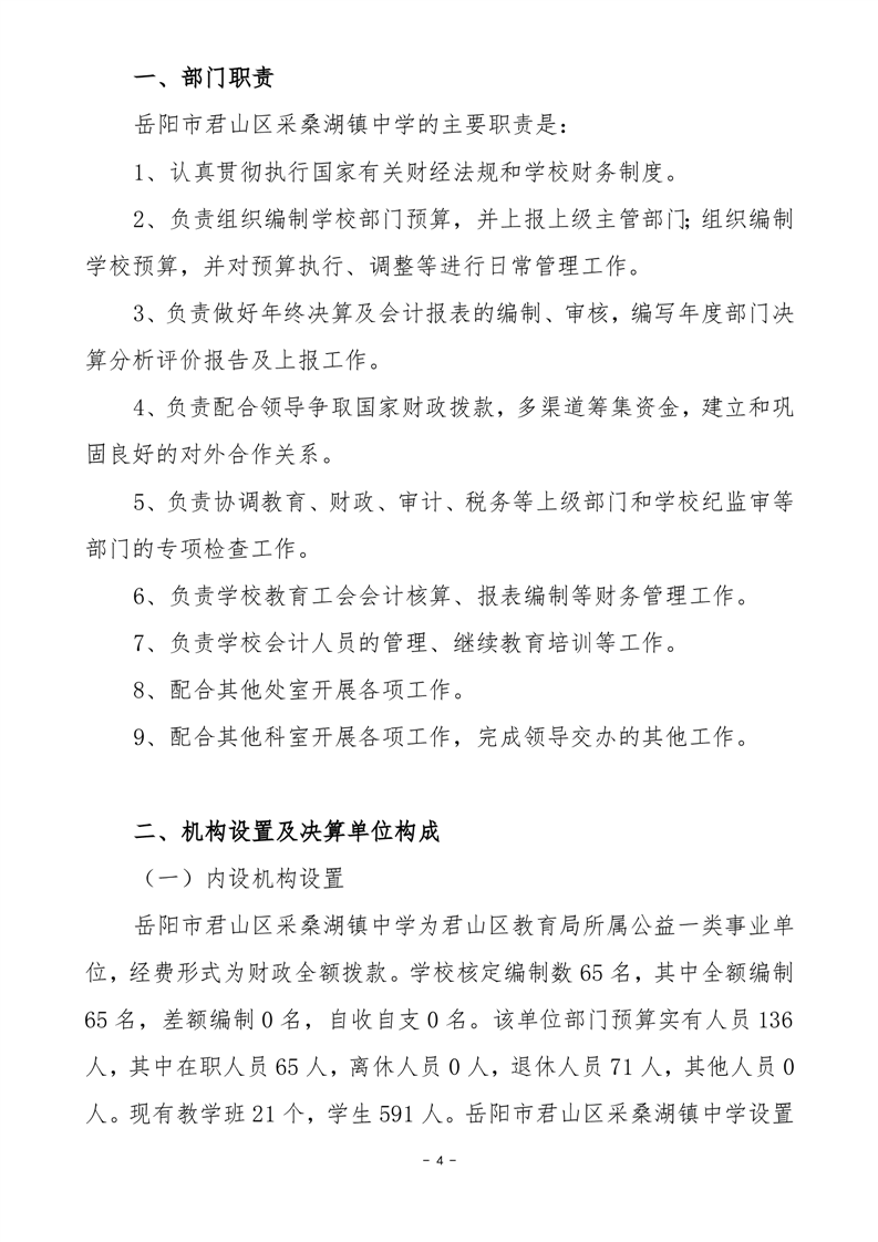 2023年度岳阳市君山区采桑湖镇中学部门决算公开