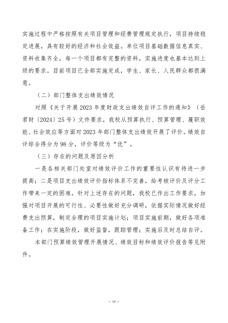 2023年度君山区采桑湖镇中学整体支出绩效自评报告.doc
